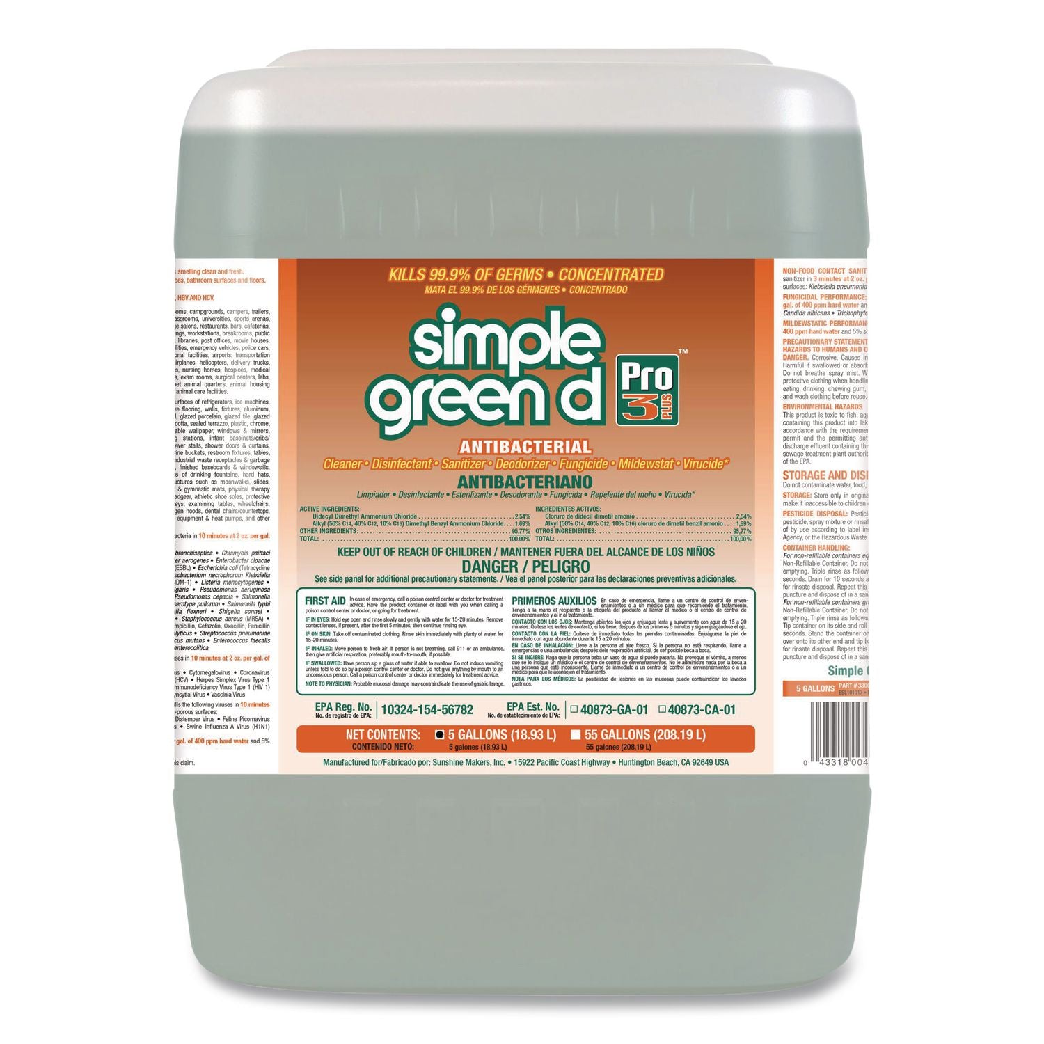 Simple Green® d Pro 3 Plus Antibacterial Concentrate, Herbal Scent, 5 gal Pail (SMP3301005)