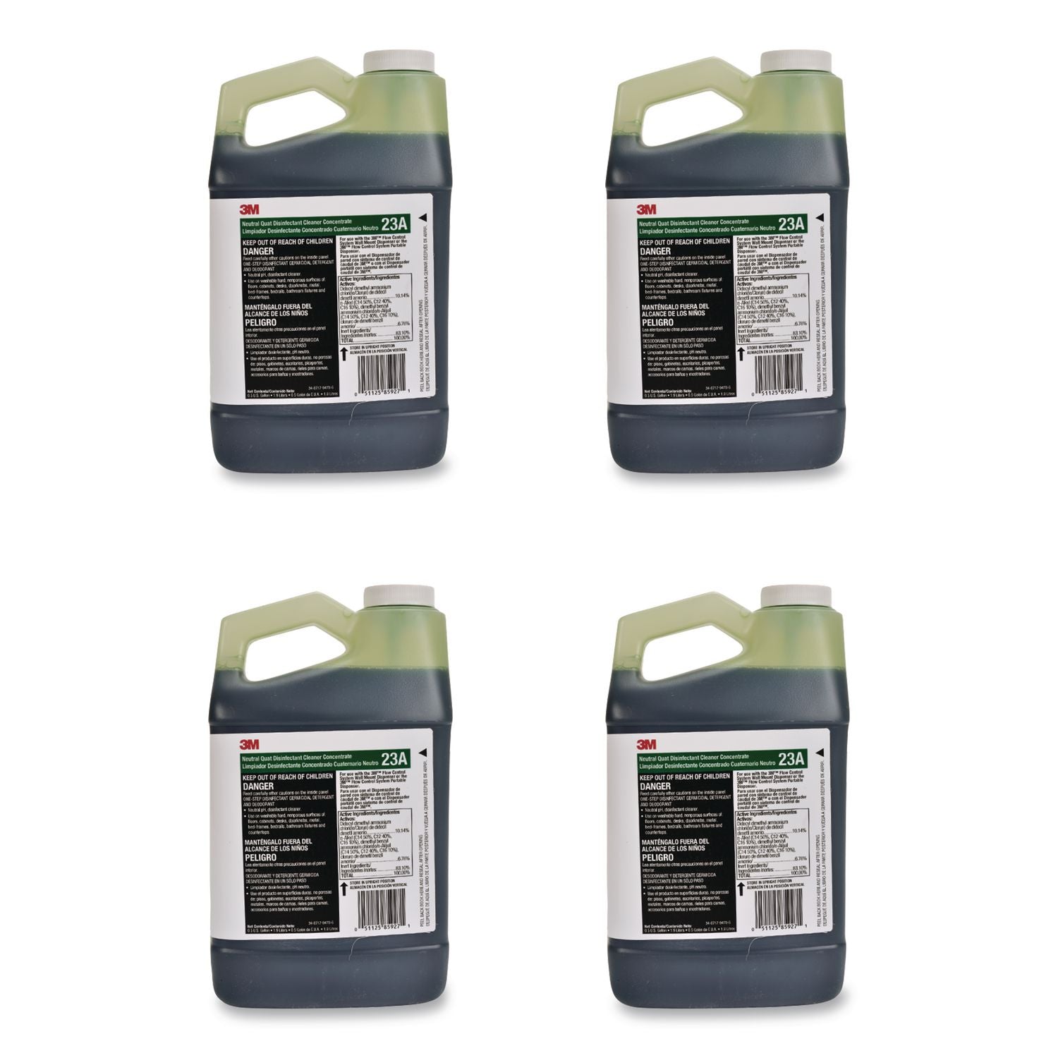 3M™ Neutral Quat Disinfectant Cleaner Concentrate 23A, 0.5 gal Bottle, 4/Carton (MMM23A)
