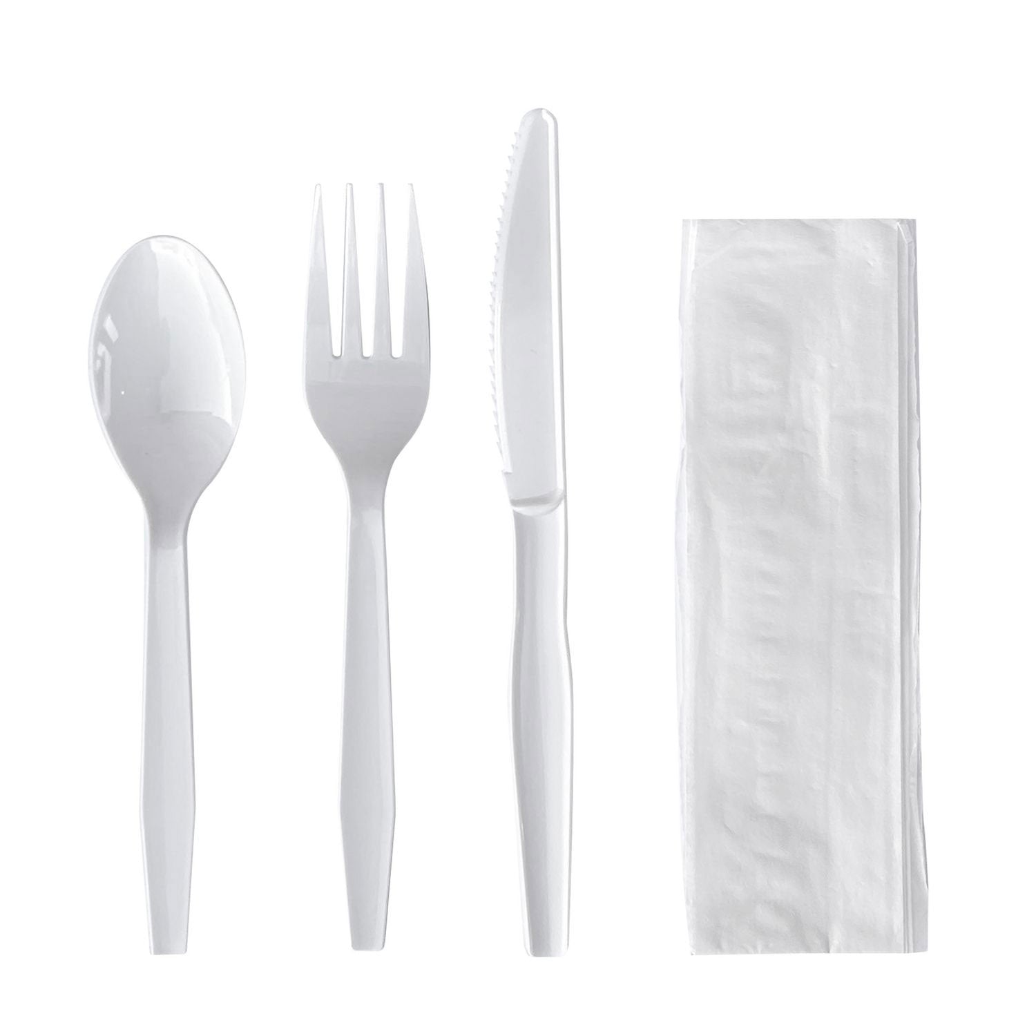 Boardwalk® Four-Piece Cutlery Kit, Fork/Knife/Napkin/Teaspoon, White, Polypropylene, 250/Carton (BWKFKTNMWPPWH)