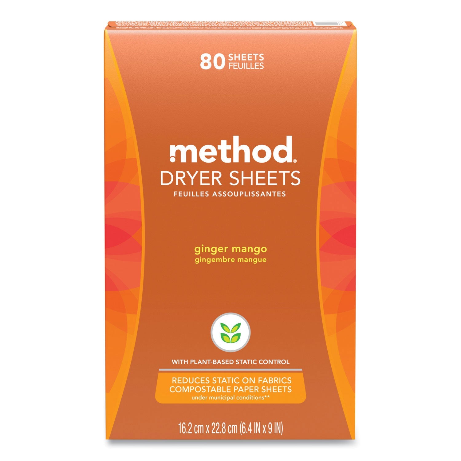 Method Dryer Sheets, Ginger Mango, 80/Box, 6 Boxes/Carton (MTH318049)