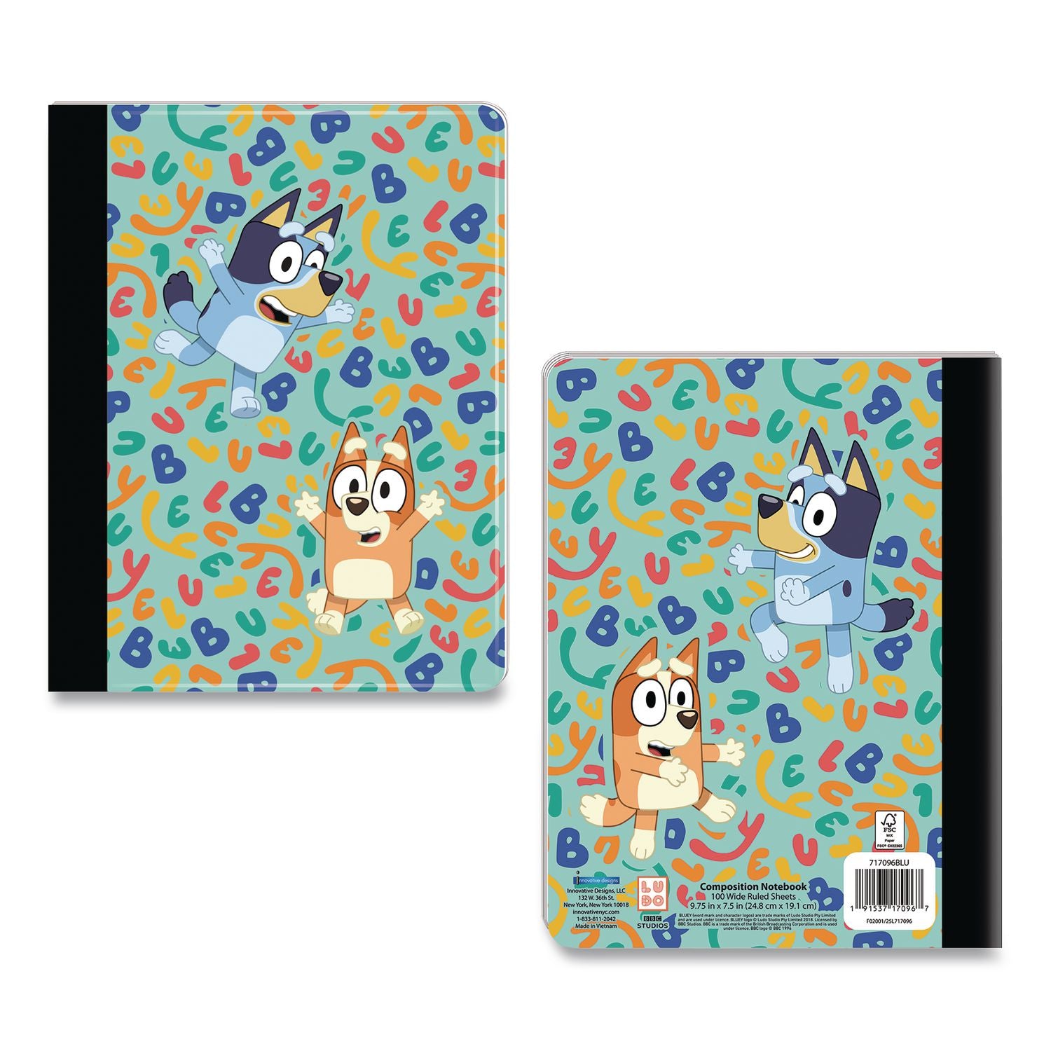 Innovative Designs Licensed Composition Book, Bluey and Bingo, Wide/Legal Rule, Multicolor Cover, (100) 9.75 x 7.5 Sheets (IDI717096BLUSA)