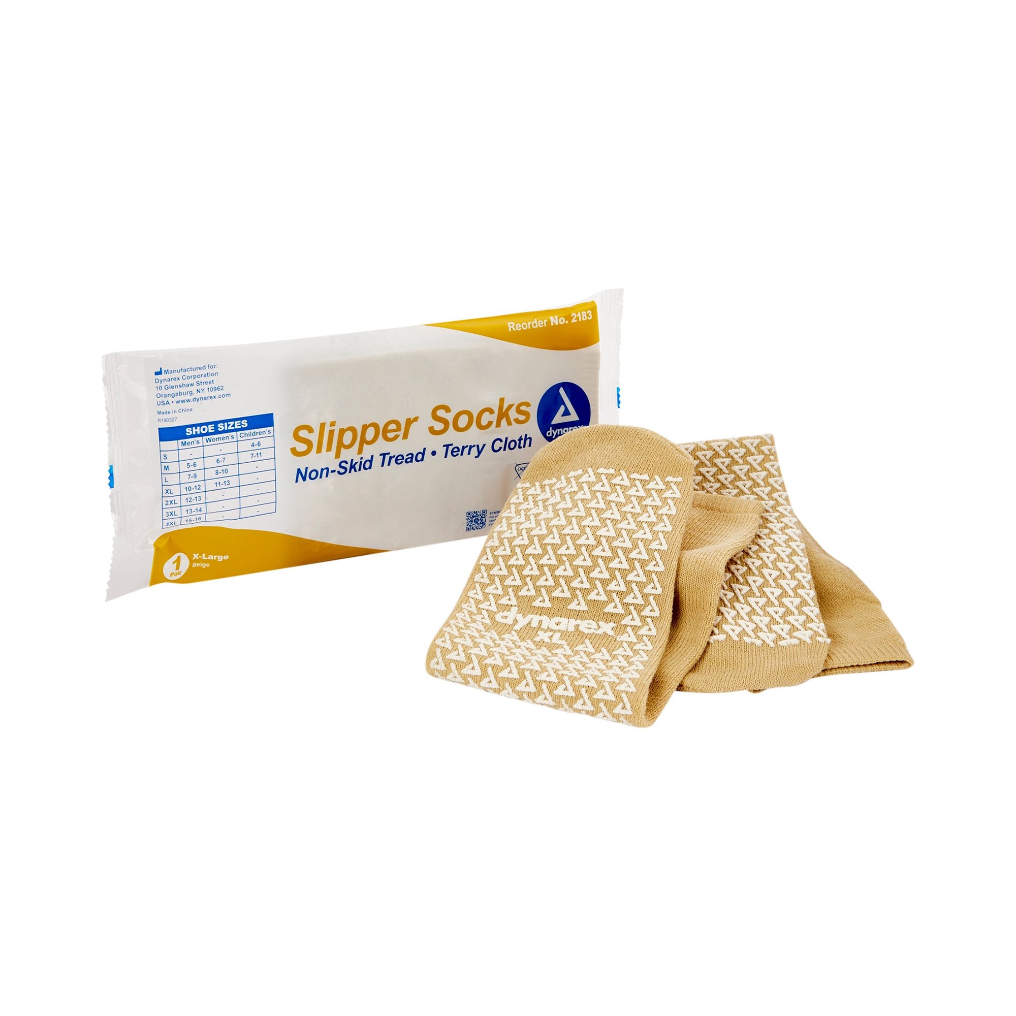 Dynarex Slipper Socks Unisex Adult X-Large Single Tread Single Patient Use Beige (826646_EA)