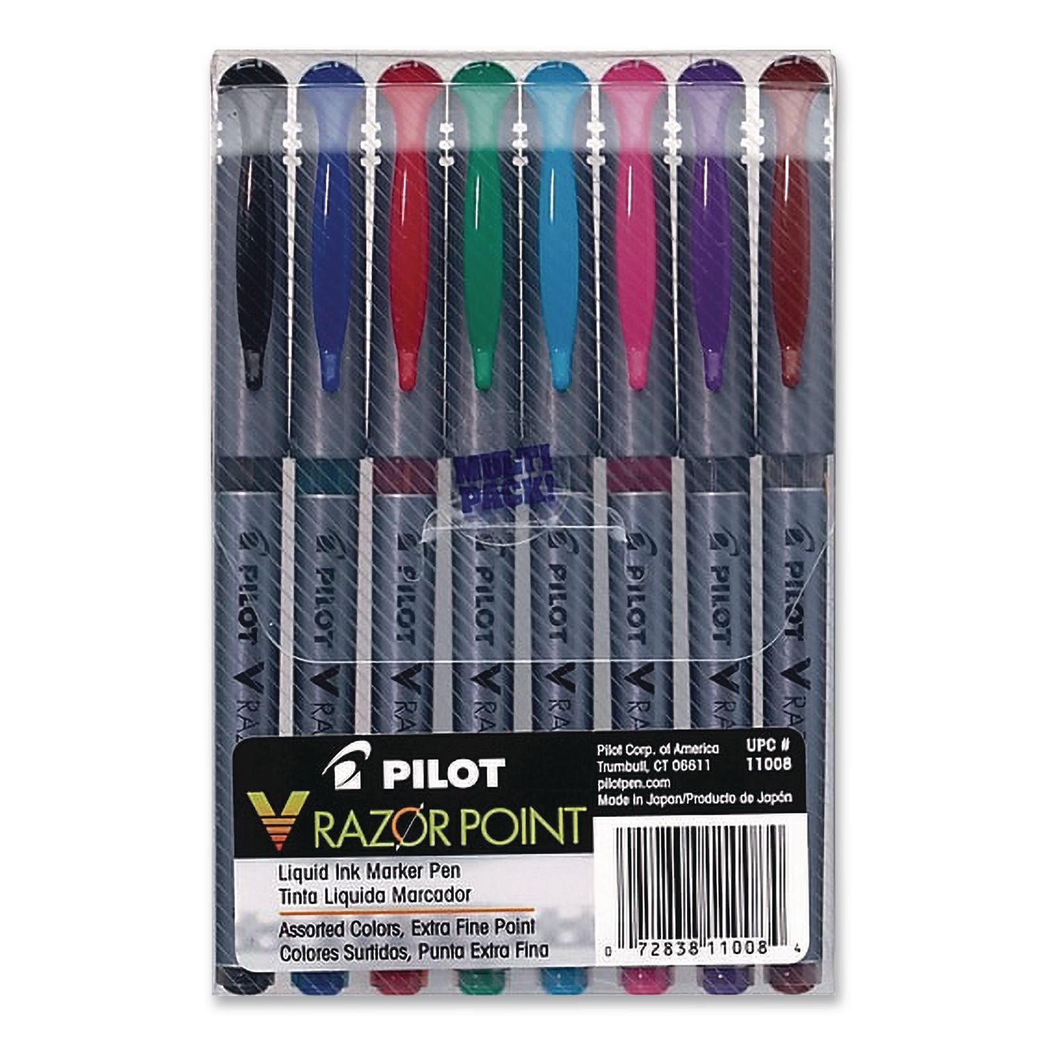 Pilot® V Razor Point Liquid Ink Porous Point Pen, Stick, Extra-Fine 0.5 mm, Assorted Ink and Barrel Colors, 8/Pack (PIL11008)