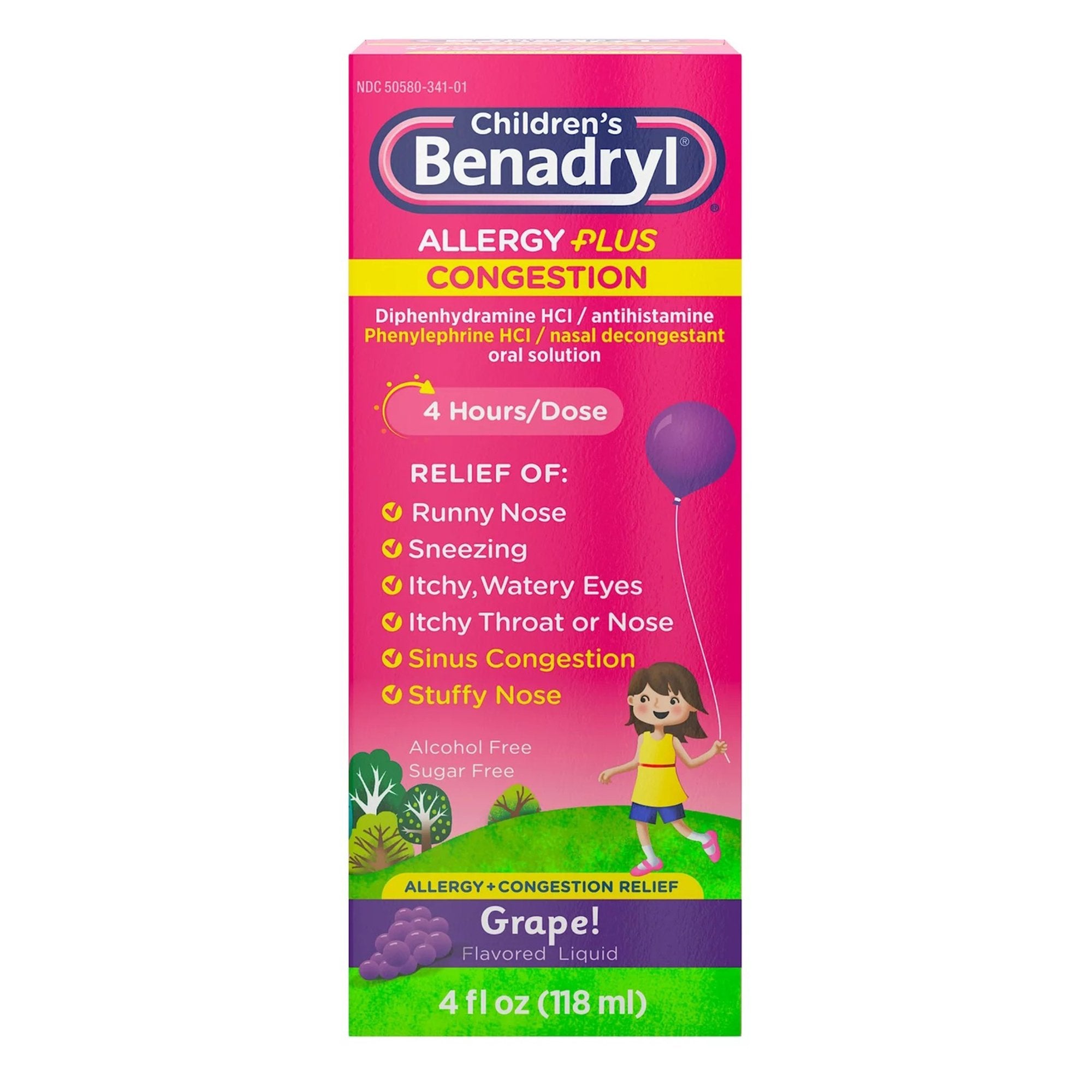 Children’s BENADRYL® Allergy Plus Congestion Children's Allergy Relief 12.5 mg - 5 mg Strength Liquid 4 oz. (1252651_EA)