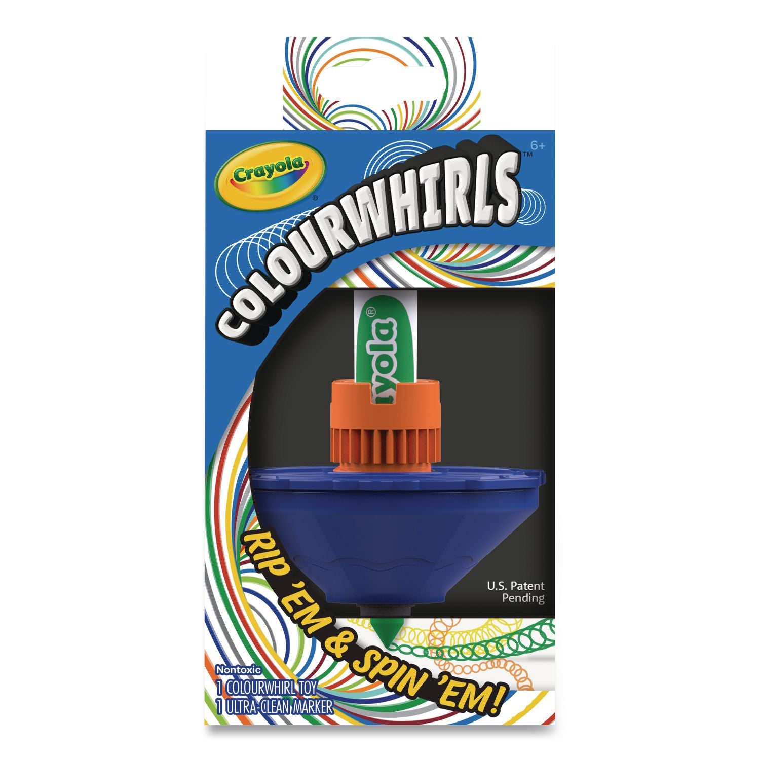 Crayola® Colourwhirls Toy with (1) Rip-Cord Spinner and (1) Ultra-Clean Washable Marker, Ages 6 and Up, 4 Pieces (CYO747645)