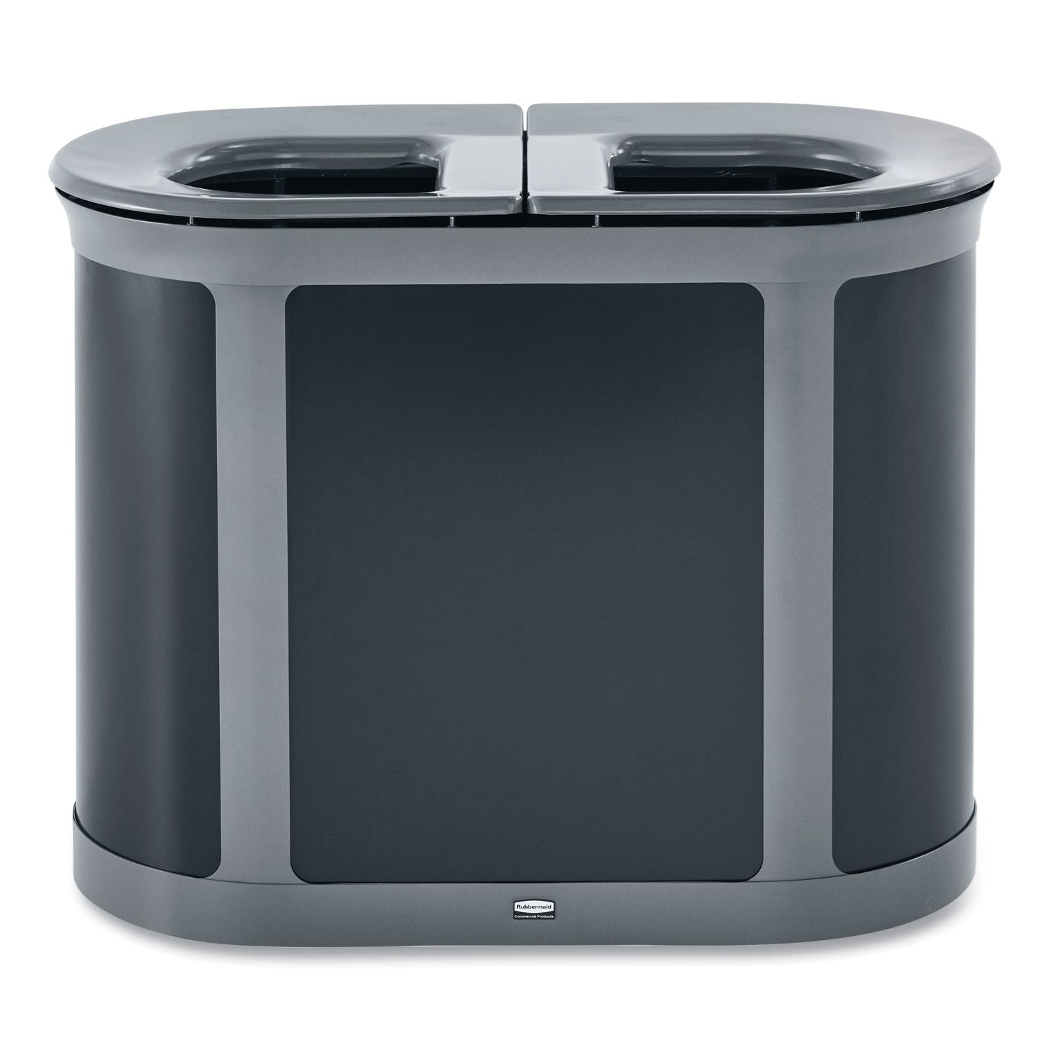 Rubbermaid® Commercial ENHANCE PILL Dual Stream Waste Receptacle, (2) 23 gal Capacity Bins, Metal, Umbra Gray/Pearl Gray (RCP2172843)
