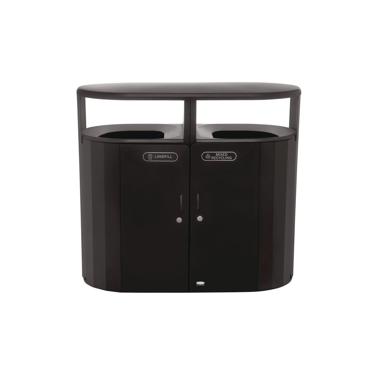 Rubbermaid® Commercial RESIST Dual Stream Waste and Recycling Container, 66 gal, Metal, Textured Black/Black Gloss (RCP2185042)