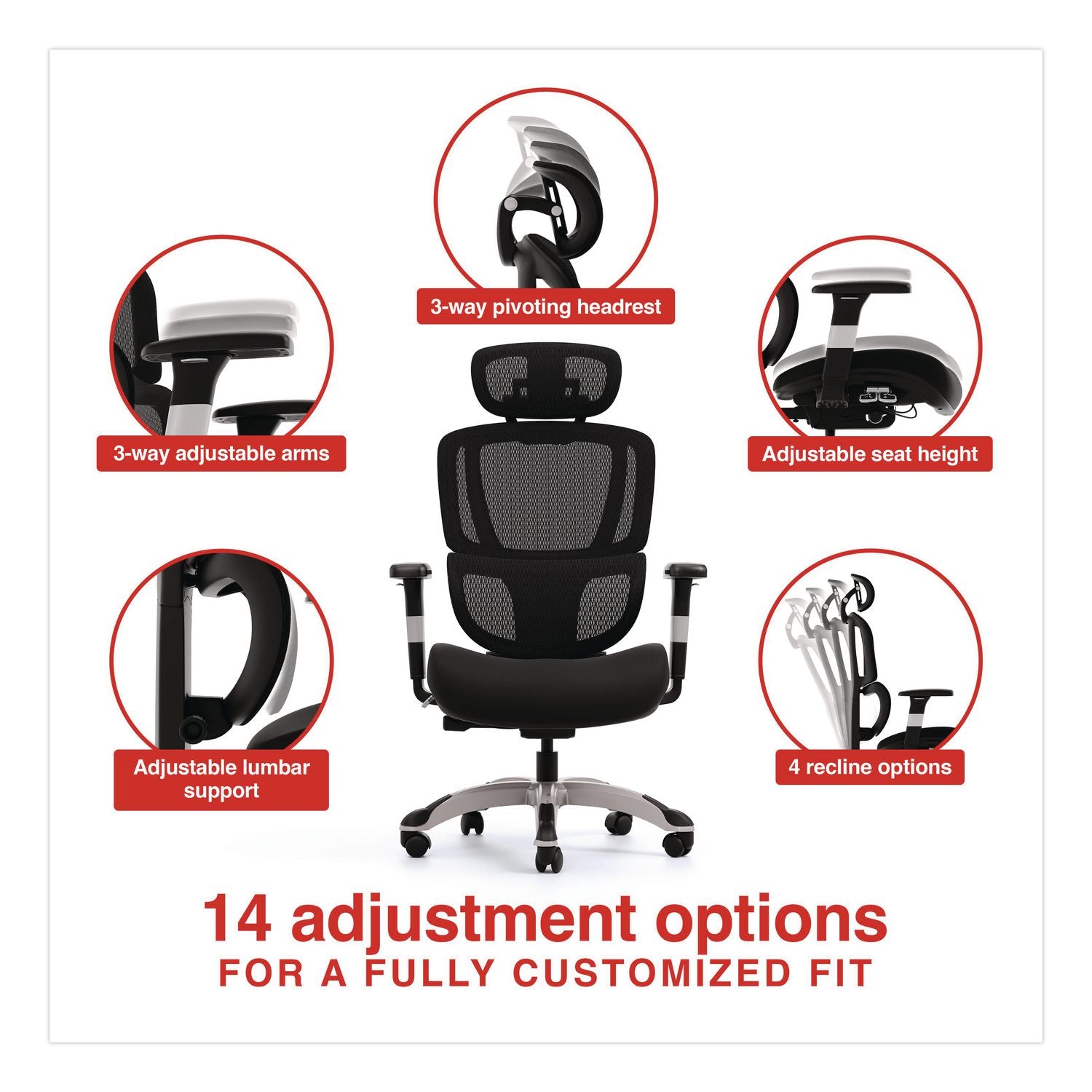 Meet the upgraded Alera® Minerva Pro. Designed with 14 points of adjustment, the Minerva Pro provides full customization for all-day comfort, no matter how demanding your workday gets. Expertly engineered for ergonomic support, this chair adapts seamlessly to your body and work style for a truly personalized fit. Equipped with three-way adjustable armrests, a pivoting headrest, a split-ratchet adjustable back height, enhanced lumbar support, and four locking recline settings, the Minerva Pro takes seating comfort to the next level. Premium features like a breathable mesh back and high-density molded foam seat deliver lasting coolness, support and comfort throughout the day. Whether you're leading meetings or deep in focus, the Minerva Pro is built to support you every step of the way.