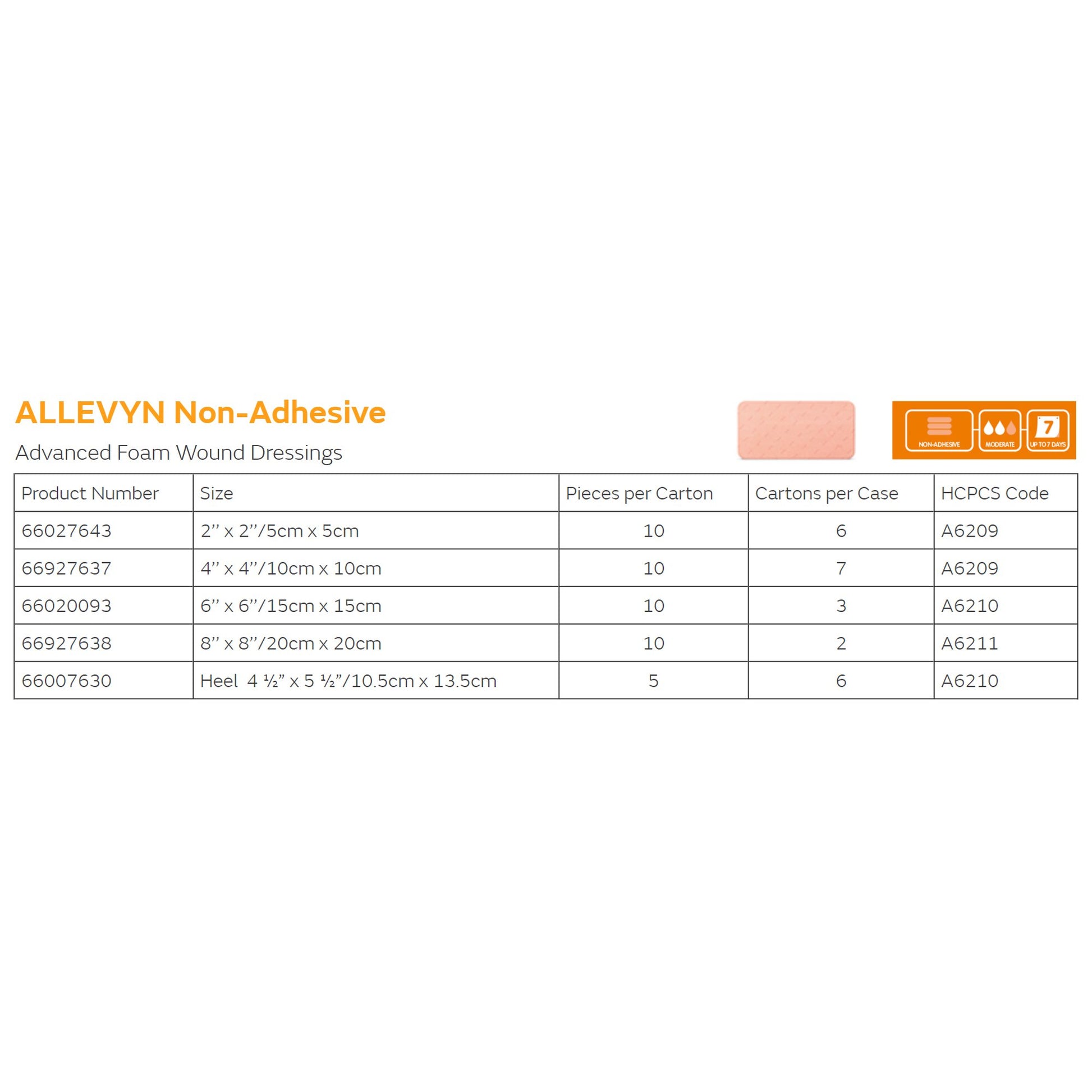 - Allevyn nonadhesive dressing's absorbent hydrocellular pad, contact layer and breathable top film keep skin moist