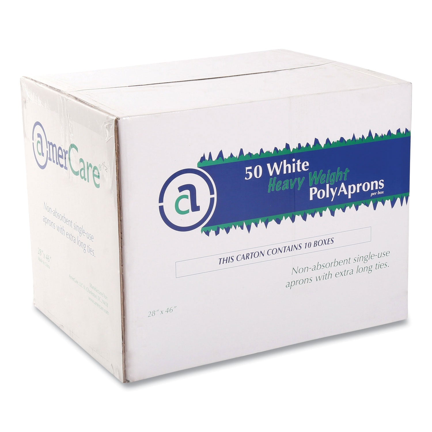 AmerCareRoyal Poly Apron, 28 x 46, One Size Fits All, White, 500/Carton (RPP28462A)