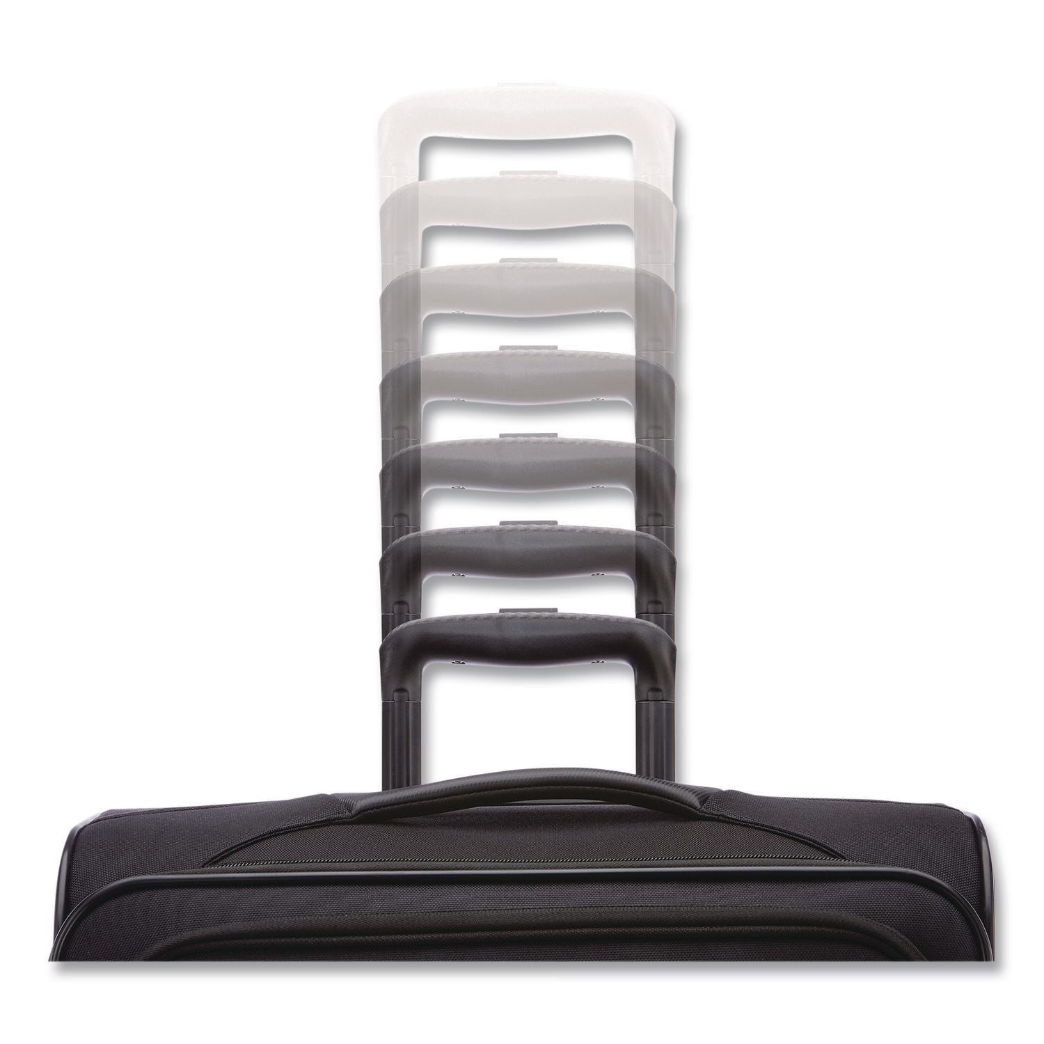 This softside spinner features a rugged polyester exterior with carbon fiber trim accents and gunmetal hardware creates a subtle and sophisticated look. It provides sturdy handling with an ergonomic carbon fiber texture trolley grip that adjusts to your size. The interior offers maximum capacity, including a modesty pocket, mesh door pocket and elastic tie tapes. The spinner rolls confidently with wear- and tear-tested ball wheels.