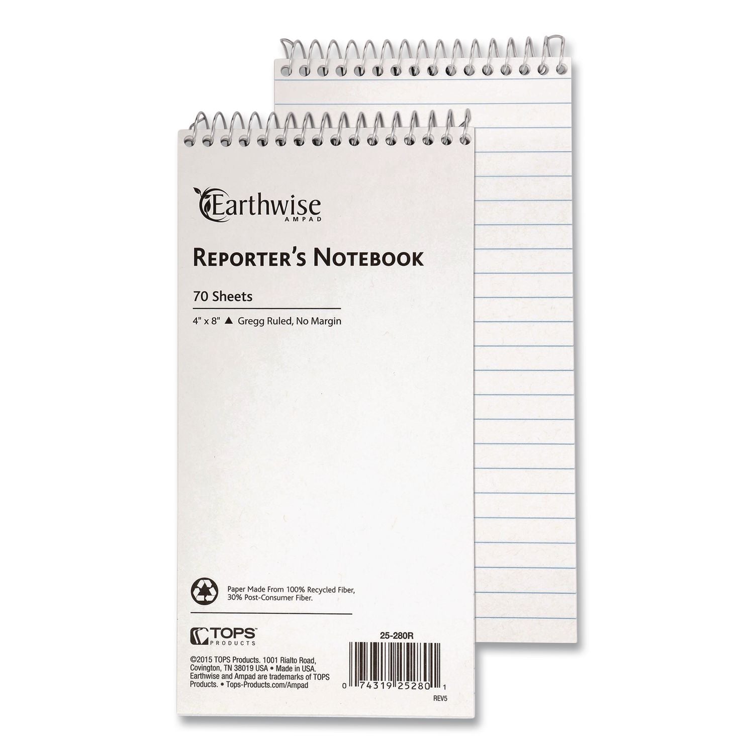 Ampad® Earthwise by Ampad Recycled Reporter's Notepad, White Cover, Gregg Rule, (70) White 4 x 8 Sheets, Dozen (TOP25280DZ)