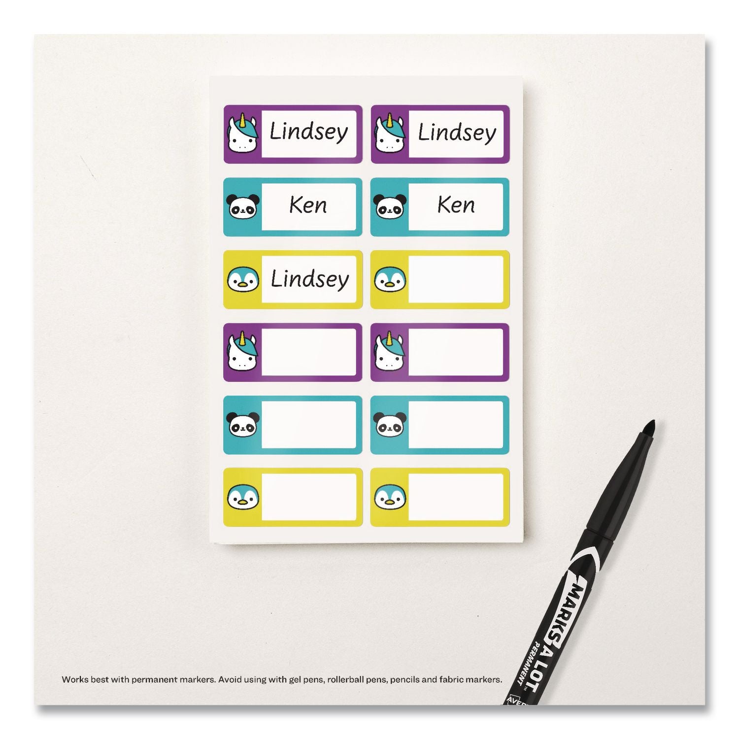 Avery® No-Iron Fabric Labels, Character/Colored Border, Handwrite Only, 0.75 x 1.75, White, 12/Sheet, 2 Sheets/Pack (AVE40770)