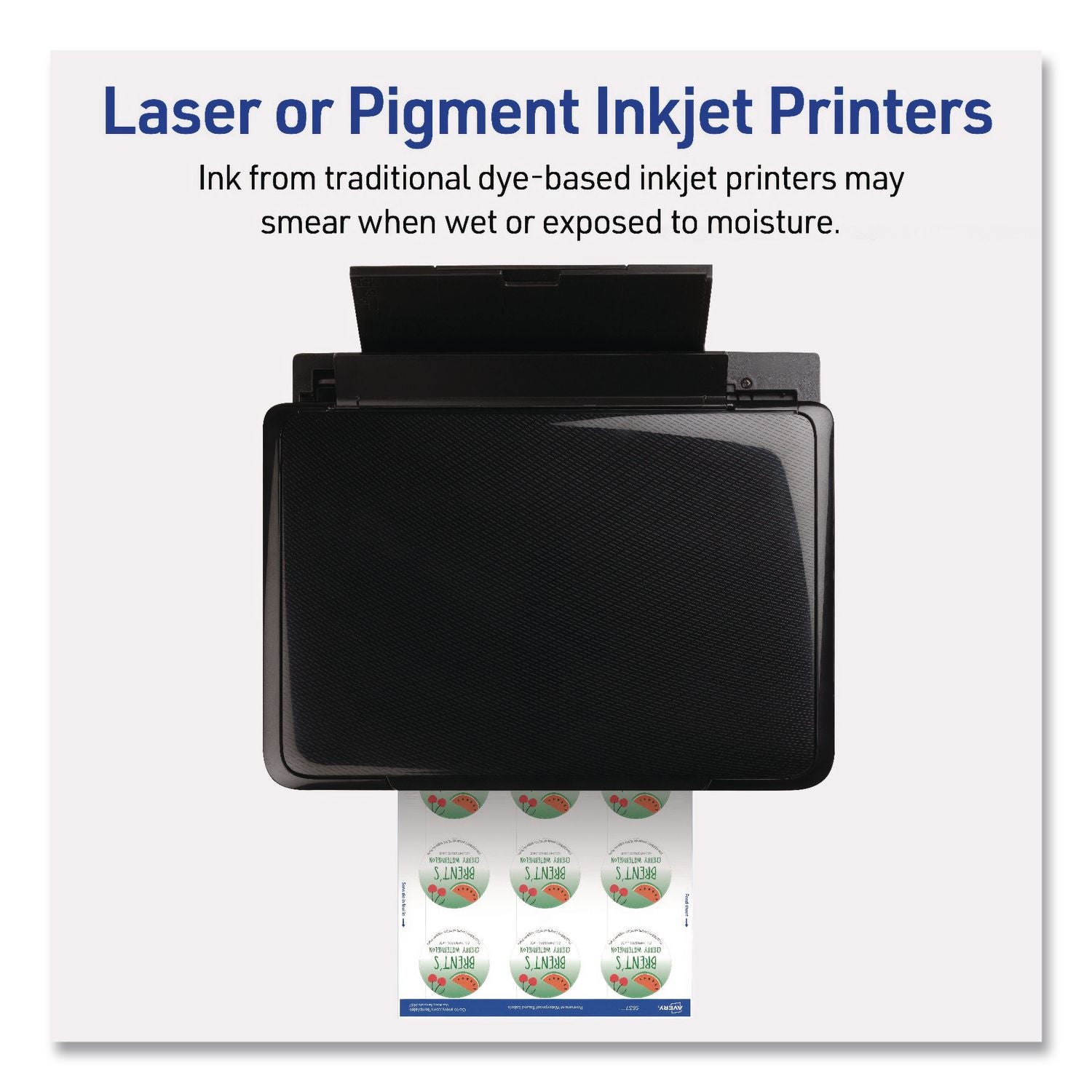 Perfect for creating durable, professional labels for any business, whether you're running a daycare center, landscaping service, mechanic shop or selling products. Made from tough polyester film with strong adhesive, these labels resist oils, grease, rough handling and outdoor weather. Ideal for candle labels, mason jar labels, wine bottle labels, soap labels, gift label stickers, essential oil labels and more, they remain smudge- and fade-free, even with frequent moisture exposure. Customize your labels with your own designs or use Avery Design & Print Online with available label templates. The Print-to-the-Edge feature allows for full-bleed designs with no borders, and Sure Feed technology reduces printer jams for crisp, smudge-free prints. Use with laser or pigment-based inkjet printers for waterproof results. Please note that traditional dye-based inkjet prints may smear when wet or exposed to moisture.