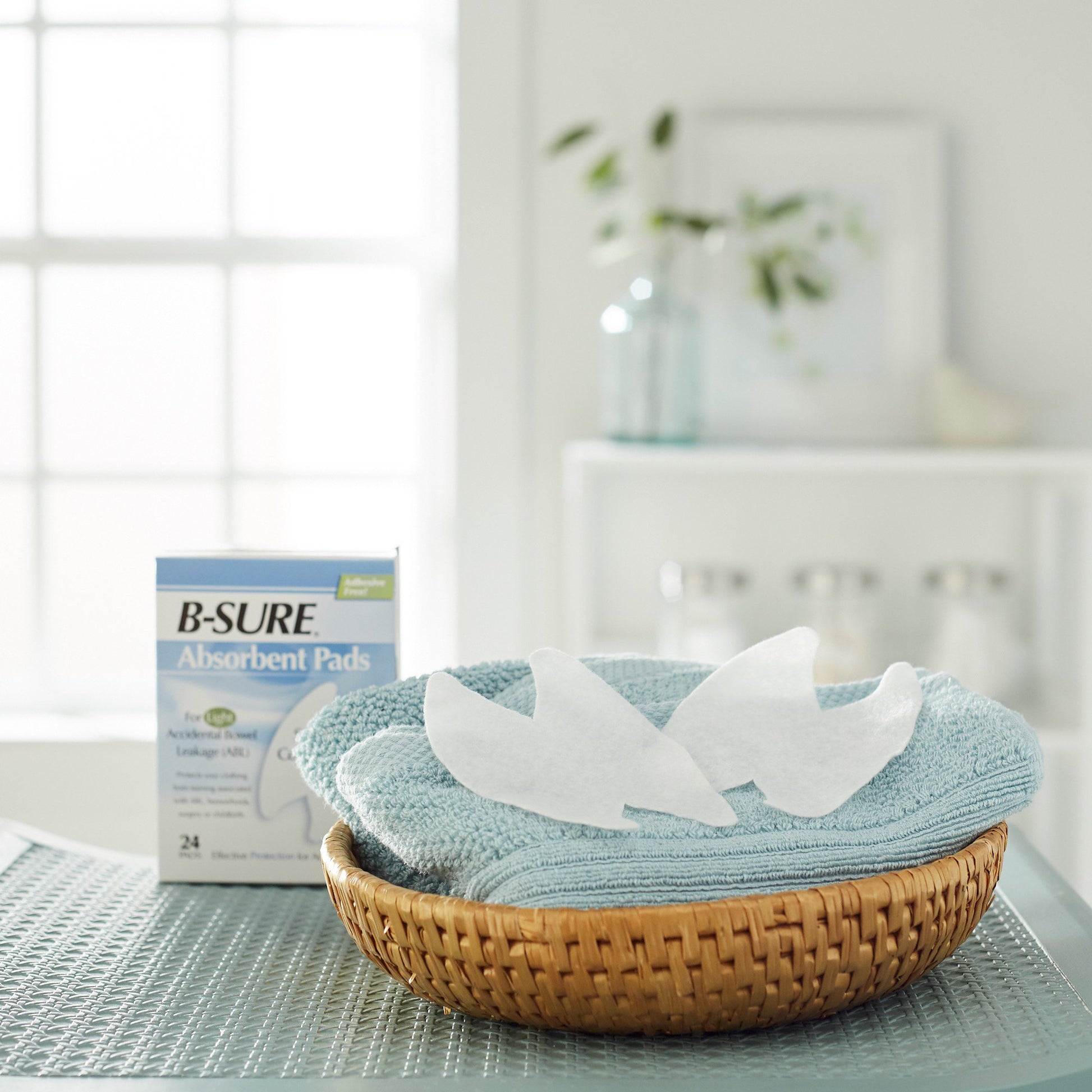 - The adhesive-free pads absorb 13 times their weight in water and are easily changed in the privacy of a restroom stall