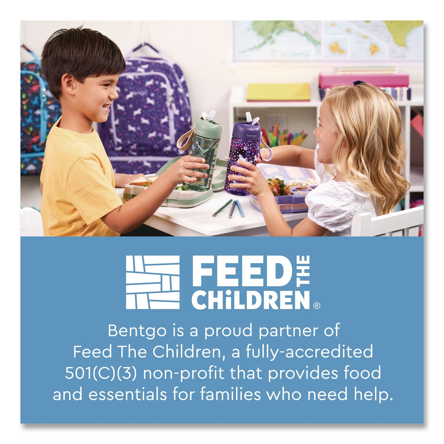 These leak-proof water bottles in colorful designs are made to match back to our coordinating Prints, Glitter, and bentgo® Kids collections, so you can build your bentgo® set with a matching lunch box, backpack, and lunch bag. Designed by America's favorite lunchtime brand, this dishwasher safe bottle is made from BPA-free materials, including durable Tritan, so it's long-lasting and completely safe to drink from. The no-spill design features a safe-sip spout and a flip-up straw with a slow-flow opening to let water come out gently—making it perfect for kids ages three and up. It's easy to clean in the top rack of your dishwasher and easily fits into a cup holder, lunch bag, backpack, and more. Featuring a hygienic flip-up cover, leak-proof lid, detachable easy-clean straw, a new, improved durable base, and a removable easy-carry handle??, it's a must-have for school, camp, daycare, and more.