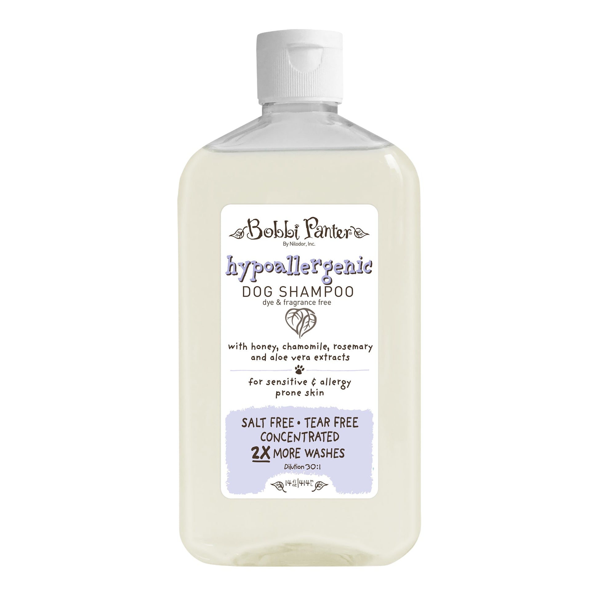 Hypoallergenic Dog Shampoo from the Bobbi Panter Botanicals collection is perfect for sensitive skin. Dye, fragrance, and paraben-free, it's pH balanced, tear-free, and enriched with aloe vera and honey extract for a soft, healthy coat. Highly concentrated at 30:1 provides extra value. This gentle formula is proudly made in the USA.