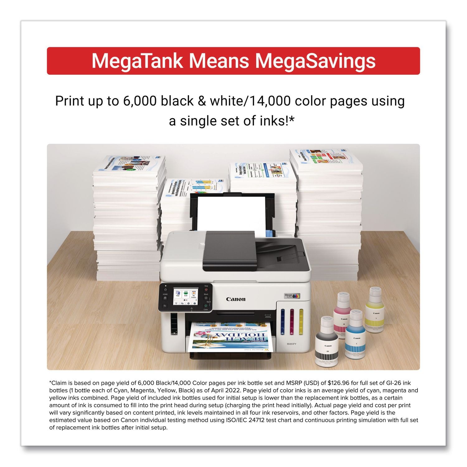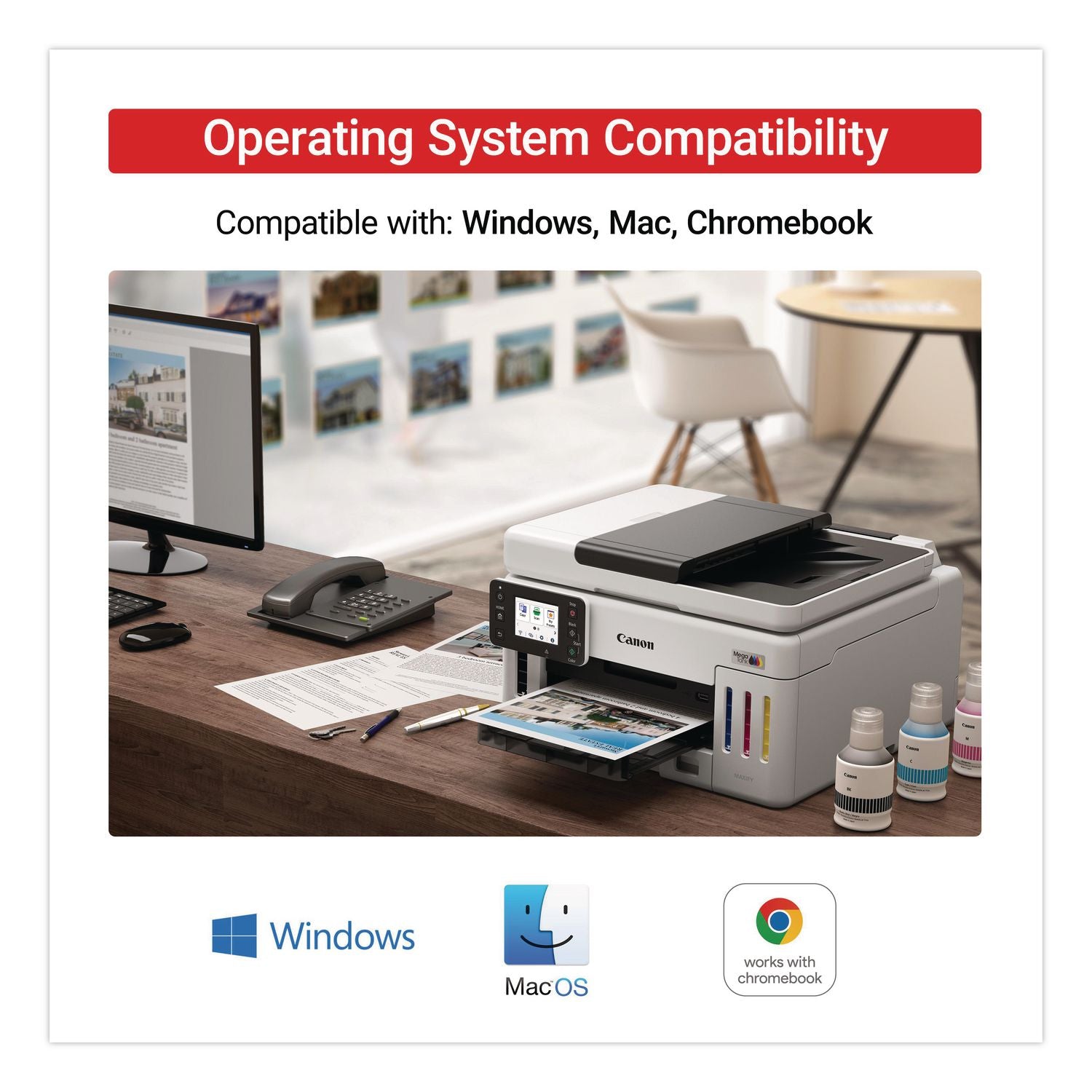 The Canon® MegaTank GX6120 Wireless Small Office All-In-One Printer is designed to meet the needs of small offices by delivering high-quality, low-cost printing, and outstanding wireless connectivity.
