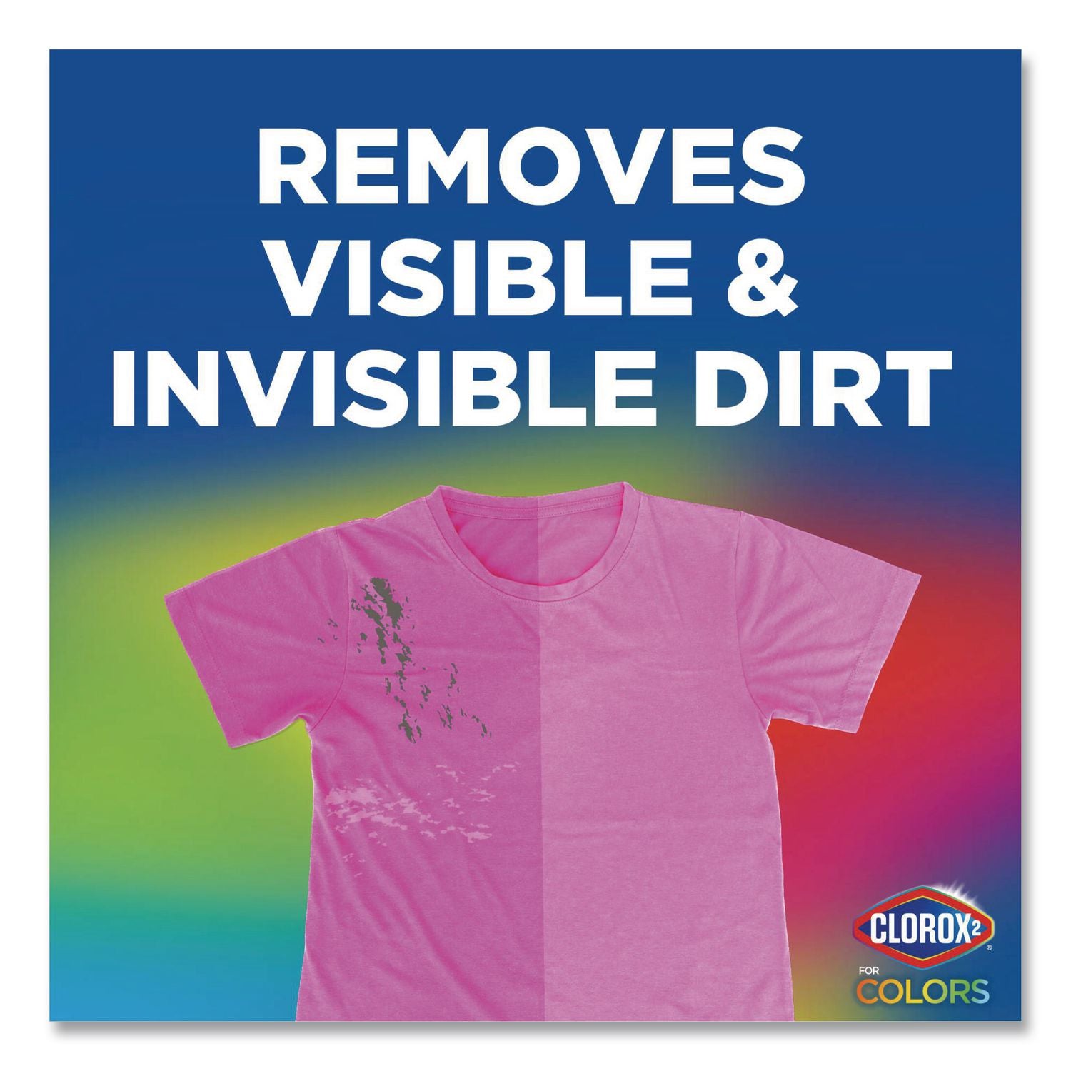 Clorox 2® for Colors Stain Remover and Laundry Additive attacks your toughest stains, including food, grass, blood, set in stains and more. This fast and powerful stain remover activates instantly and even removes 3x more stains vs. the leading value detergent alone. Safe for use in standard and HE washers, this versatile 3-in-1 formula not only removes stains and odors, but also brightens colors and whites. Clorox 2® for Colors Stain Remover and Laundry Additive helps freshen your clothes with a clean scent and is a bleach free formula that is safe for fabrics and colors when used as directed.