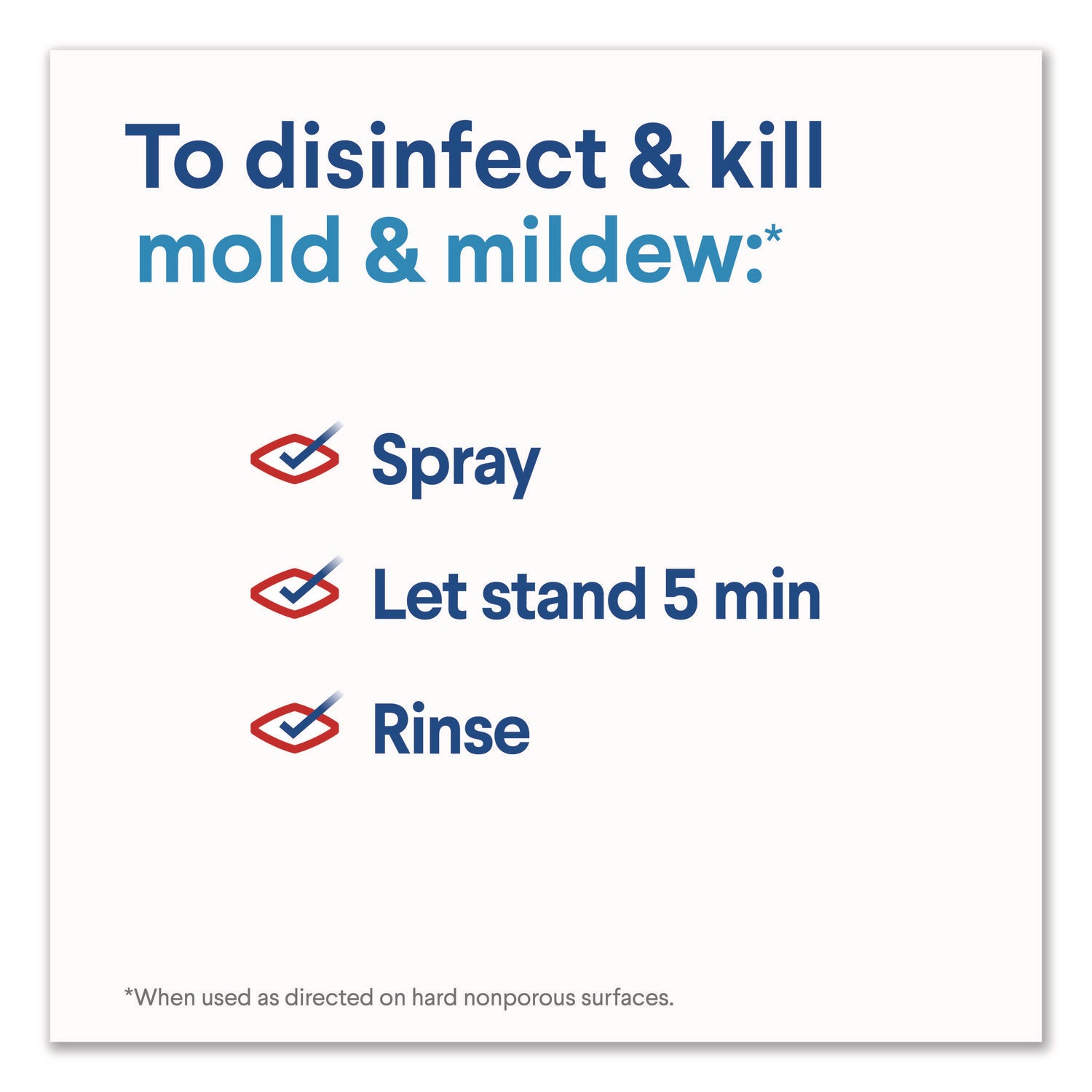 Tilex Mold and Mildew Remover Spray kills mold and mildew on glazed tile, tubs, shower doors, counters, sinks, no-wax floors and more. Powered with Clorox Bleach, this tile cleaner removes mold and mildew without scrubbing. Use this spray cleaner on hard, nonporous surfaces to eliminate stains and kill 99.9 percent of common household mold, mildew and bacteria, including Staphylococcus aureus (Staph), Streptococcus pyogenes (Strep) and Trichophyton mentagrophytes (Athlete's Foot Fungus). This bathroom cleaner is also great for glazed and unglazed ceramic tile, fiberglass, grout and vinyl shower curtains. And the bottle's Smart Tube technology means you'll spray every drop. Spray your way to a clean bathroom with Tilex.