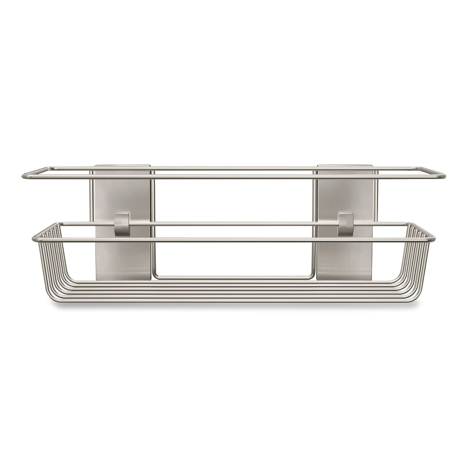 Keep your shower essentials organized. This caddy sticks to many surfaces, including glass, mirror, tile, fiberglass, wood and painted surfaces. It adheres firmly and comes off leaving no holes or sticky residue, providing a great alternative to unsightly, unreliable suction cups and damaging screws and nails.