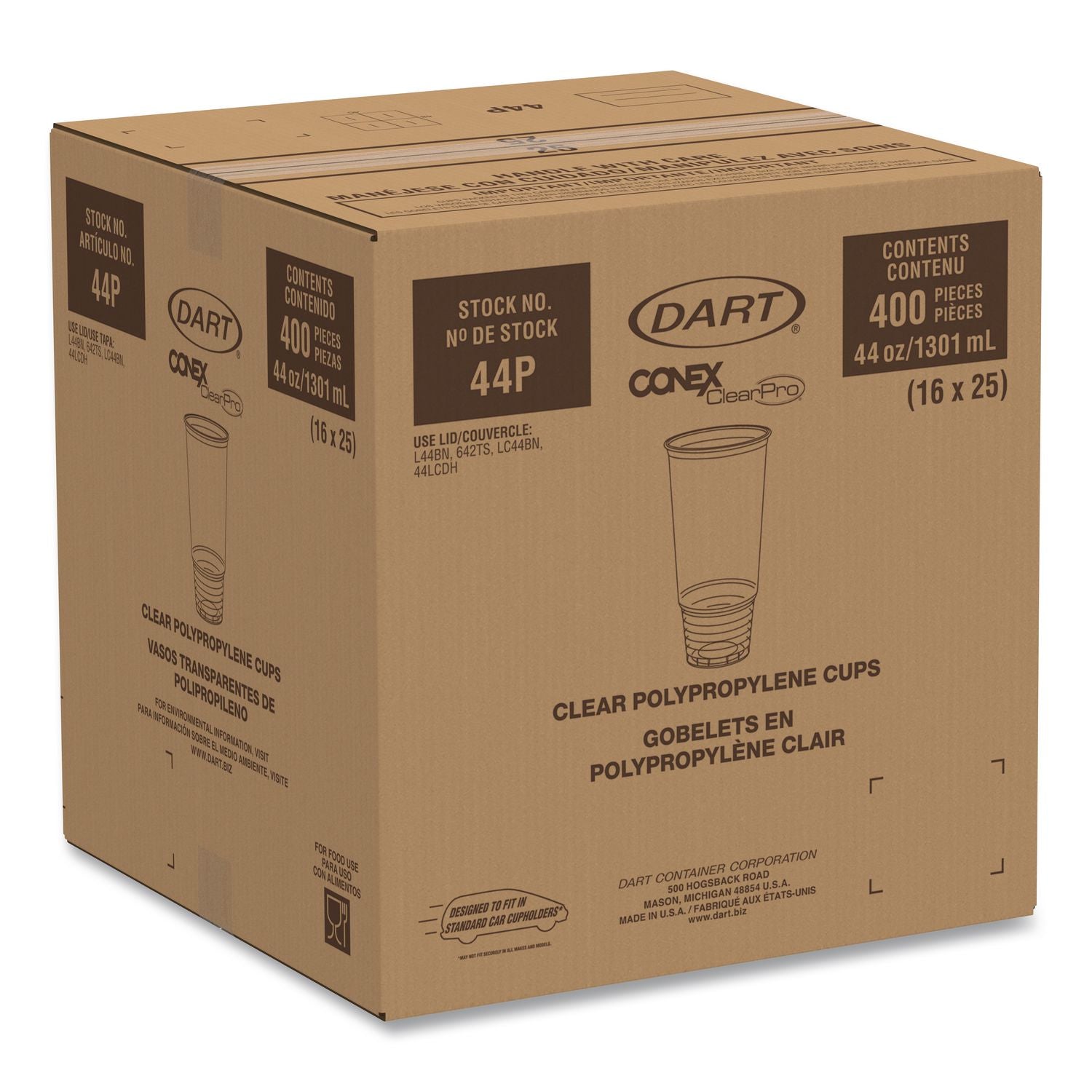 Dart® Conex ClearPro Plastic Cold Cups, ProPlanet Seal, 44 oz, Clear, 400/carton (DCC44P)