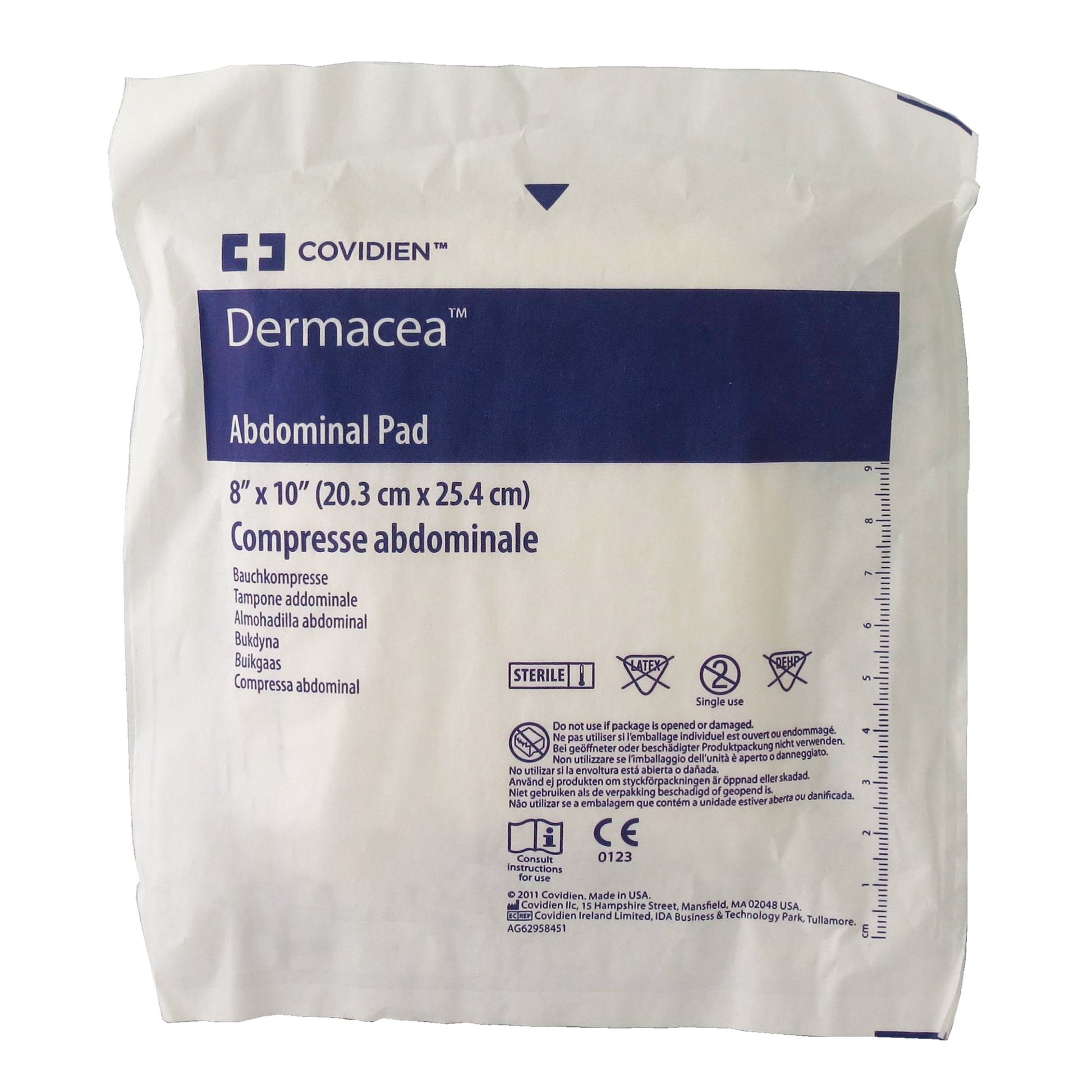 - Dermacea abdominal pads cover stomach wounds and provide protective cushioning.