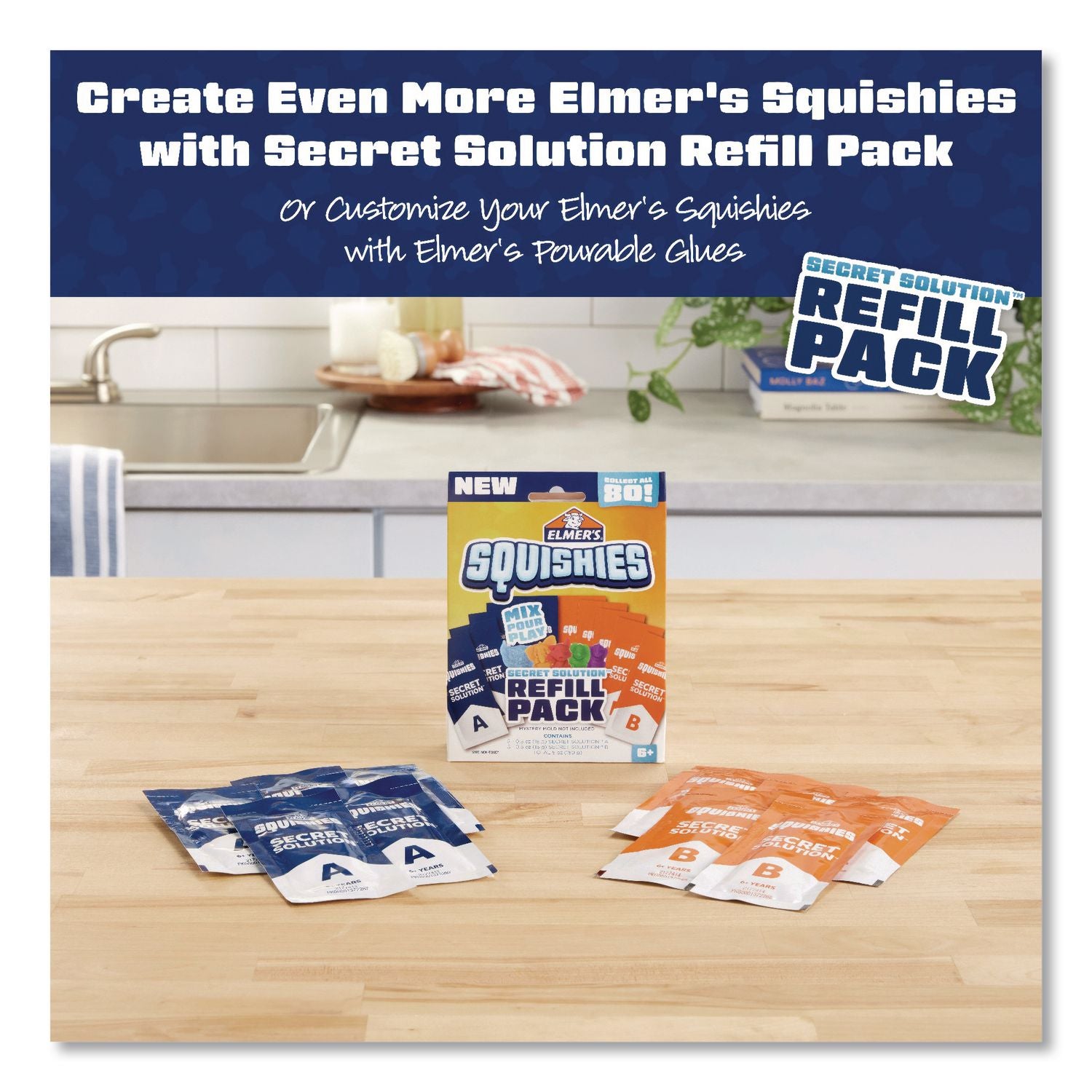 - Package Includes: (2) Character Molds; (2) Secret Solutions (A & B); (2) Mixing Cups; (2) Stir Sticks; (2) Elmer's Glue Pens