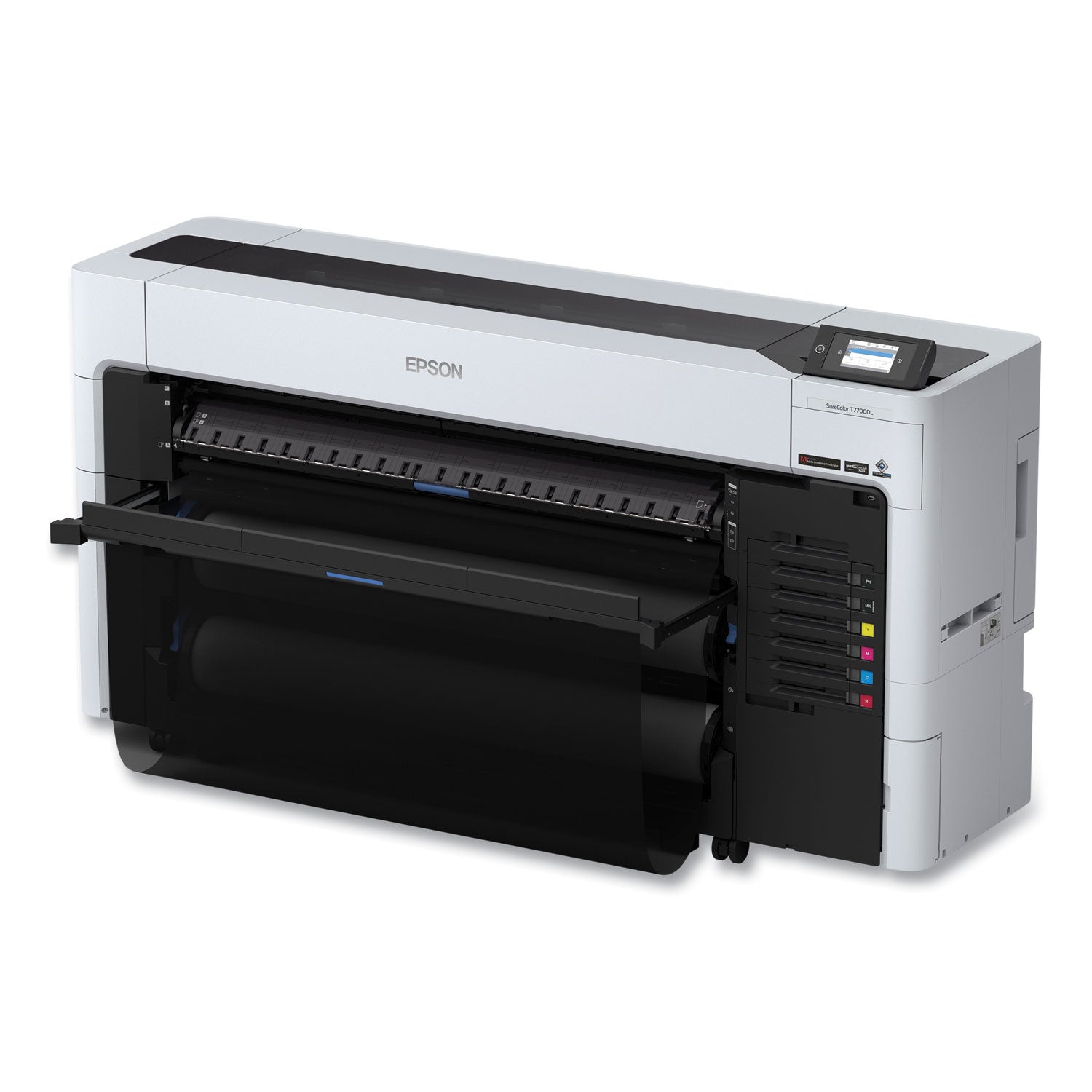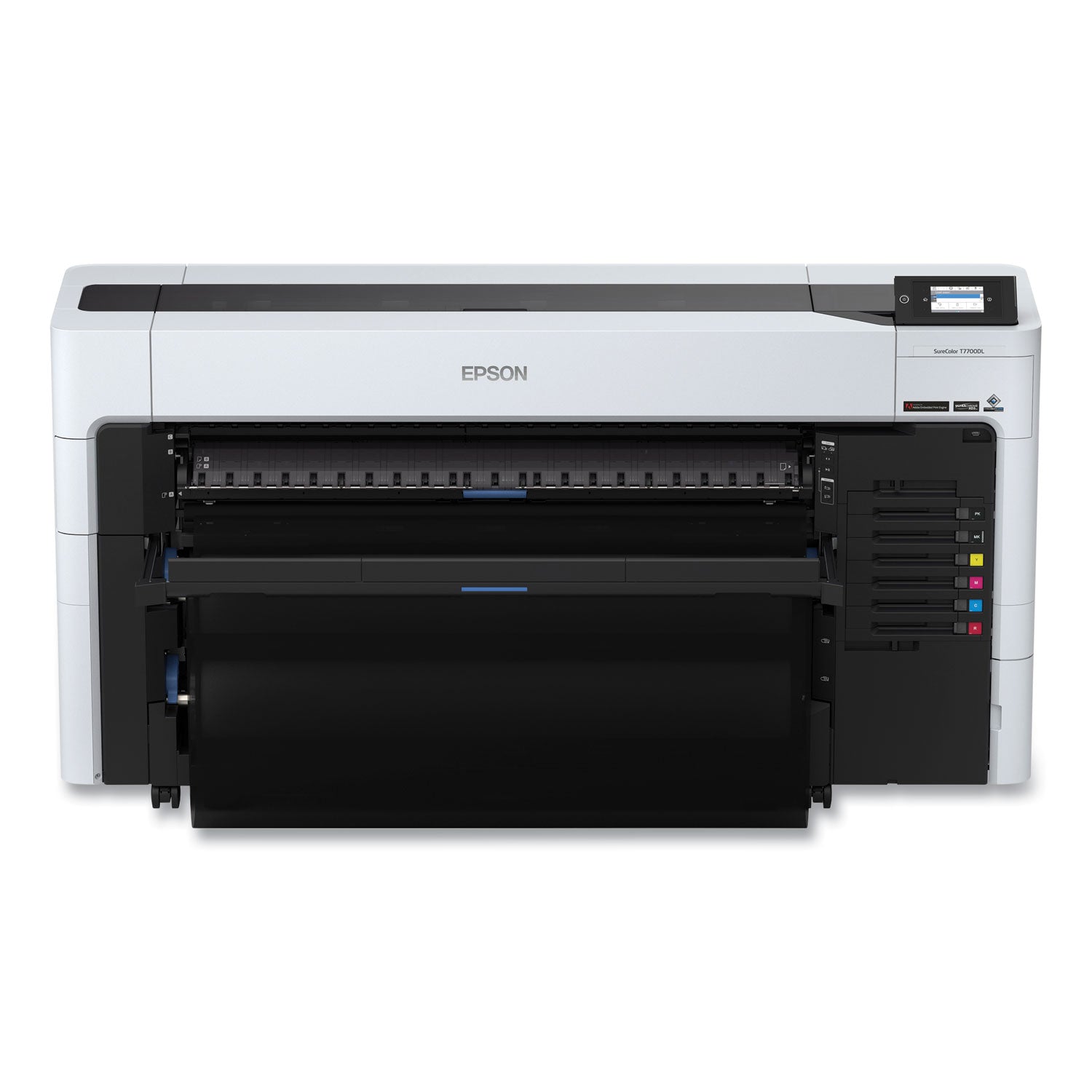 Epson delivers a first-of-its-kind design that redefines speed, versatility and efficiency for its class: the SureColor® T7770DL. Having the smallest footprint in its class—up to 25% smaller than its competition—and full-front operation means the T7770DL fits where other printers don't. It's designed for outstanding quality, sharpness and speed, generating technical drawings at production-class speeds over 1,400 ft/hr2, A1/D-size prints in as little as 16 seconds, and graphics at speeds up to 300 ft2/hr. Its innovative UltraChrome® XD3 six-ink set with dedicated Red Ink opens the door to both an extraordinary color gamut for a production printer and rich red branding colors. Built with a 1.6-liter bulk ink pack system (ink sold separately), this high-quality printer provides over double the ink capacity of previous generations for a remarkably low ink cost per milliliter, as well as helps minimize waste when compared to Epson® SureColor T-Series cartridge systems. And simple, carefree operation combined with new levels of versatility and media flexibility helps users do more using less space—all with a low total cost of ownership. Add it all up, and this is not just a one-of-a-kind printer: it's the new benchmark in high-speed CAD and graphics.