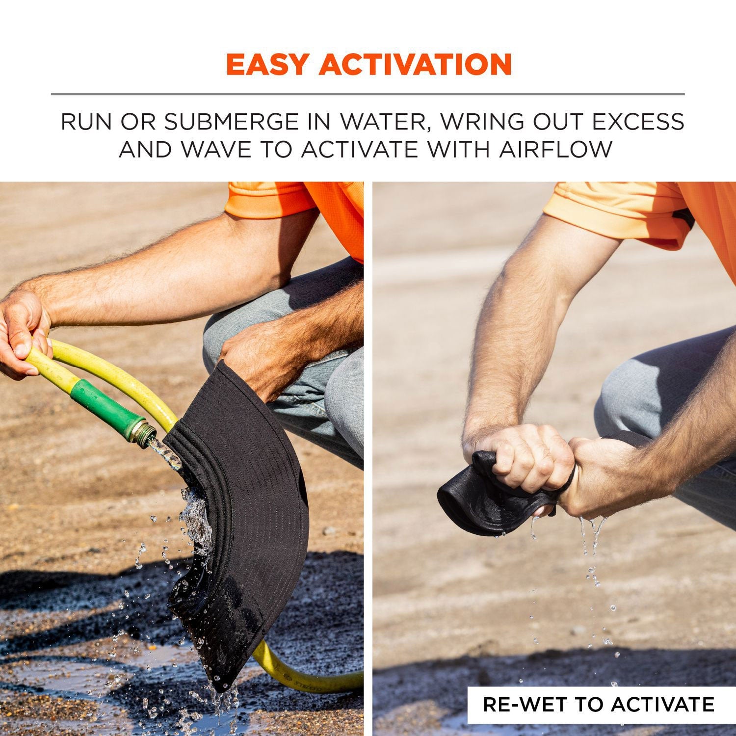 The Chill-Its 8939 Cooling Bucket Hat features a performance evaporative cooling material that provides immediate cooling relief when worn wet and wicks sweat and moisture when worn dry. Designed with a polyester-spandex blend, this cooling sun hat is flexible, easily folds up for storage and offers a comfortable and stretchable fit. The wide brim and UPF 50+ treatment offers face, ear, and neck protection from harmful UV rays and an anti-odor treatment makes for fresh all-day wear. One size fits most, this cooling hat features a back-of-hat cinch cord for an adjustable fit. Soak the bucket hat in water until saturated, wring out excess water and wave to activate with airflow-the evaporative cooling process begins instantly and lasts for hours when worn in environments with suitable airflow. If worn dry, the moisture-wicking fabric draws perspiration away to keep you dry. To reactivate, simply rewet. Ideal for construction, landscaping, roofing or anyone working in the heat.
