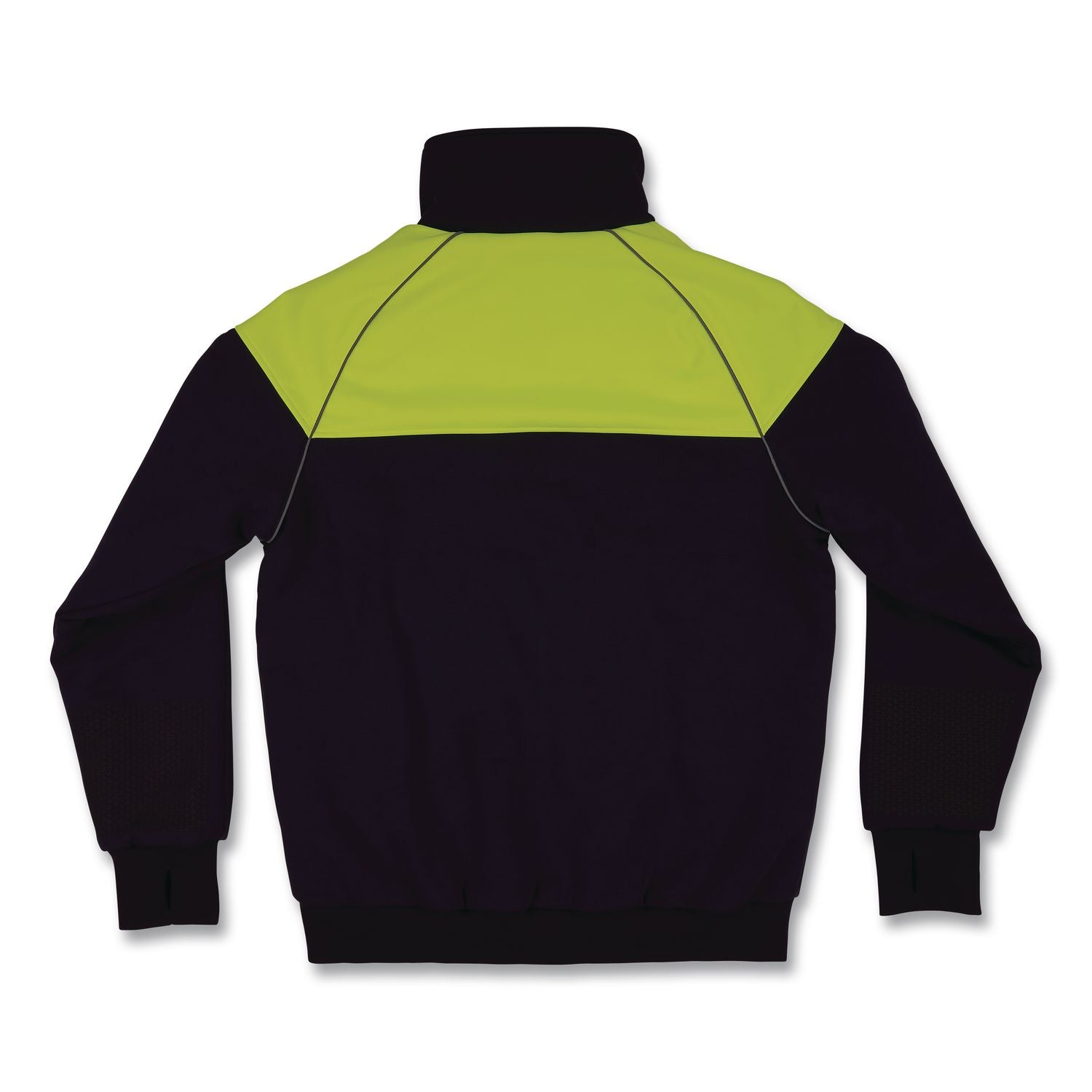 The N-Ferno 6474 Insulated Cooler Jacket is rated to -10°F/-23°C conditions for up to five hours of moderate work activity in cooler cold storage facilities. Designed with triple-layer insultation and 80 g of polyfill, this jacket delivers warmth, comfort and durability. The upper section is crafted with 300 g 75D softshell material, providing wind-resistant protection, while the lower section is made with 330 g sweatshirt material for a relaxed, comfortable fit that allows for extended, non-bulky wear. The sweatshirt also features a soft polyester jersey lining that offers a cozy feel against the skin. For added functionality, the jacket features Tri-Hex grips on the forearms for secure box handling and a high collar to shield your neck from the cold. Oversized pockets offer plenty of storage and easy access, even with gloves on. Rib knit cuffs with thumb holes and heavy-duty zippers lock out wind and cold, keeping you warm and comfortable all day. Reflective accents, including large areas of lime and reflective piping, enhance visibility in low-light conditions, making it suitable for safety-conscious environments. The cooler jacket is machine washable for easy and convenient care. Ideal for those working in cold storage facilities, whether in a cooler or freezer room. Also designed for outdoor workers in any industry, from construction to mining and outdoor recreational activities such as hiking or snowmobiling.