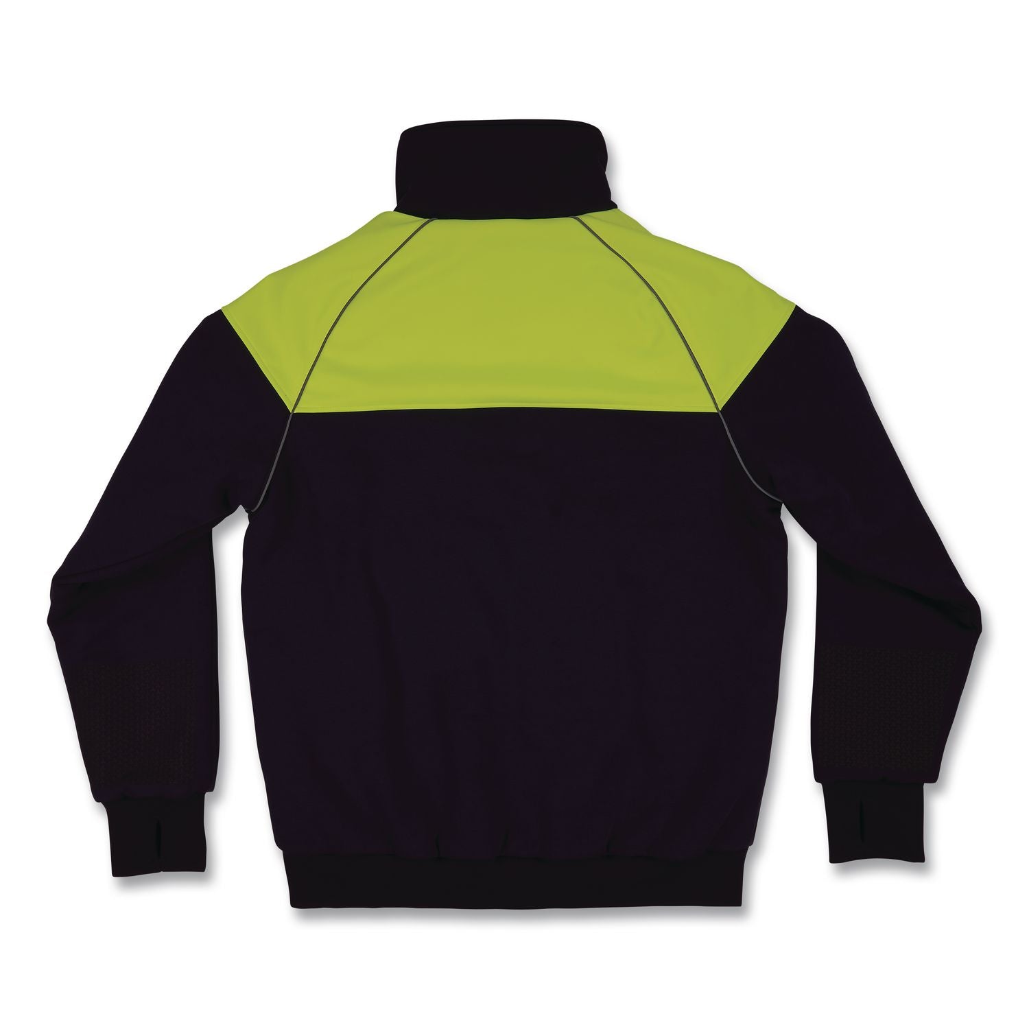 The N-Ferno 6474 Insulated Cooler Jacket is rated to -10°F/-23°C conditions for up to five hours of moderate work activity in cooler cold storage facilities. Designed with triple-layer insultation and 80 g of polyfill, this jacket delivers warmth, comfort and durability. The upper section is crafted with 300 g 75D softshell material, providing wind-resistant protection, while the lower section is made with 330 g sweatshirt material for a relaxed, comfortable fit that allows for extended, non-bulky wear. The sweatshirt also features a soft polyester jersey lining that offers a cozy feel against the skin. For added functionality, the jacket features Tri-Hex grips on the forearms for secure box handling and a high collar to shield your neck from the cold. Oversized pockets offer plenty of storage and easy access, even with gloves on. Rib knit cuffs with thumb holes and heavy-duty zippers lock out wind and cold, keeping you warm and comfortable all day. Reflective accents, including large areas of lime and reflective piping, enhance visibility in low-light conditions, making it suitable for safety-conscious environments. The cooler jacket is machine washable for easy and convenient care. Ideal for those working in cold storage facilities, whether in a cooler or freezer room. Also designed for outdoor workers in any industry, from construction to mining and outdoor recreational activities such as hiking or snowmobiling.