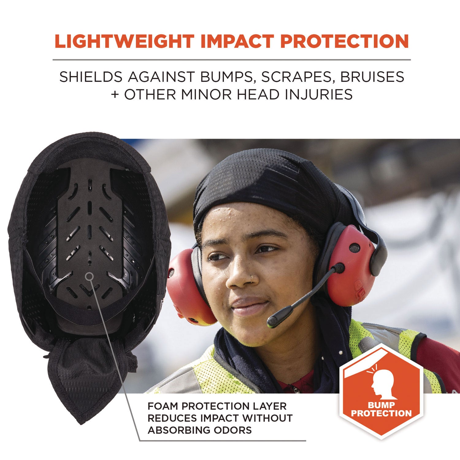 The Skullerz 8948 Mesh Do Rag Bandana features the Skullerz 8943F(x) hinged impact-resistant bump cap insert for flexible, breathable protection against bumps, scrapes, bruises and other minor head injuries. Designed with larger head and hairstyles in mind, this do rag also offers an enhanced, flexible and non-bulky fit for small to average size heads and hairstyles, due to its simple design. This lightweight bandana is constructed with a stretchable mesh polyester for increased comfort, airflow and a cooler feel. The terry cloth sweatband wicks moisture away to prevent sweat from dripping into eyes. One size fits most, the back features an elastic band that stretches to comfortably fit a variety of head sizes. To be worn correctly, the three pieces of fabric should also be tied in a knot in the rear. Not bulky like a hard hat, bump caps are typically worn in spaces where worker-generated impact head protection is needed, like low ceilings, beams, low pipes and other bump hazards.