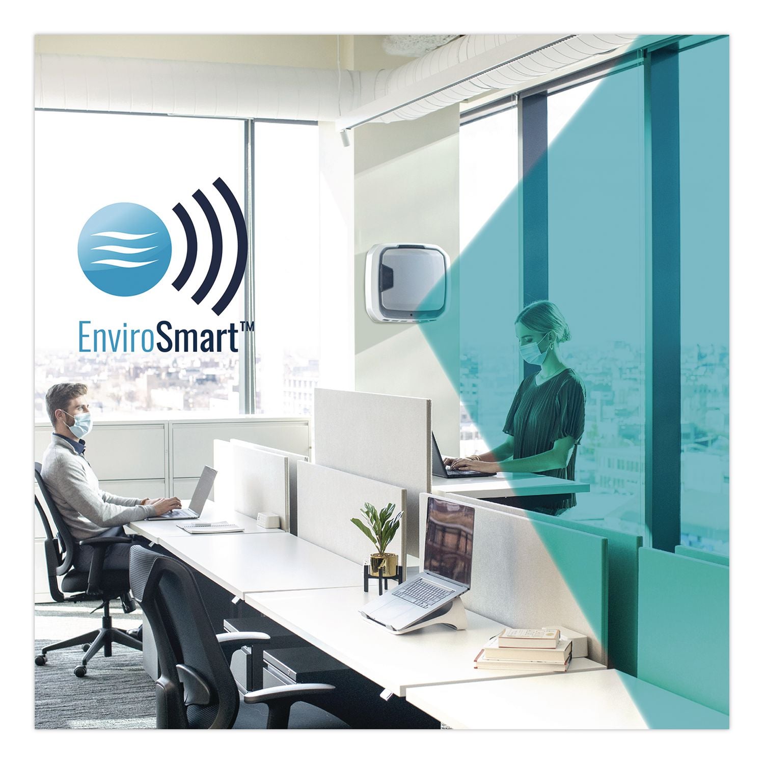Commercial grade wall mount air purifier with proprietary smart sensor technology and integrated air quality display. Four-stage H13 True HEPA Filtration effectively removes at least 99.95% of particles as small as 0.1 microns, including allergens, such as pollen, dust, pet dander and smoke in rooms 300 to 550 square feet. Antimicrobial HEPA treatment applied to the True HEPA filter inhibits the growth of odor and stain-causing microorganisms to extend the filter lifespan. Monitors occupancy and air quality: the air purifier that works harder when you need it powered by EnviroSmart™ Technology. See real time air quality data: PureView ™ Technology shows the percentage of particles captured and a live status of room air quality. Seamlessly integrates in your wall creating whole-room circulation. Designed and engineered for long term use.