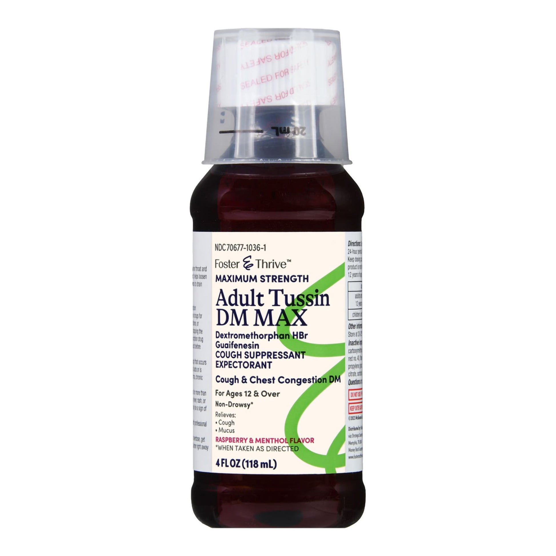 - Foster & Thrive Adult Tussin DM Max helps loosen phlegm (mucus) and thin bronchial secretions to drain bronchial tubes; it temporarily relieves cough due to minor throat and bronchial irritation as may occur with a cold
