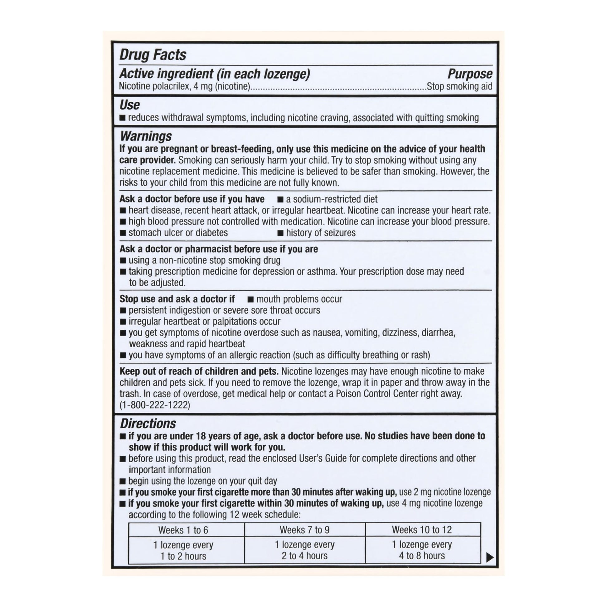 - There are 4 milligrams of nicotine polacrilex in each lozenge