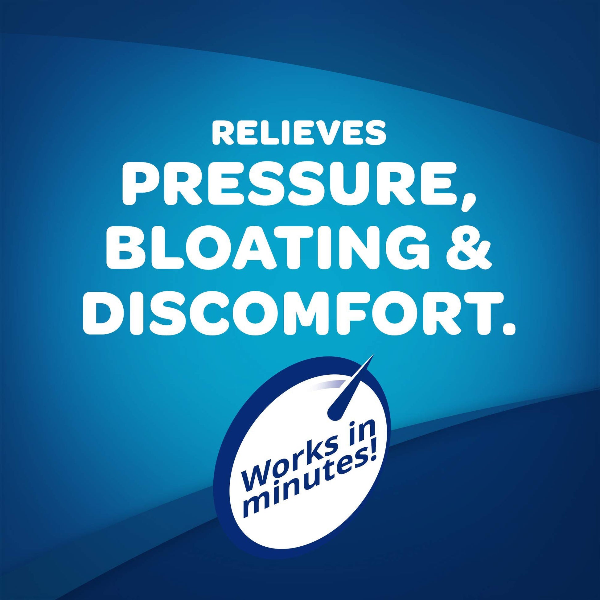 - Extra gas such as belching, bloating, and feelings of pressure and discomfort in the gut can be diminished with simethicone