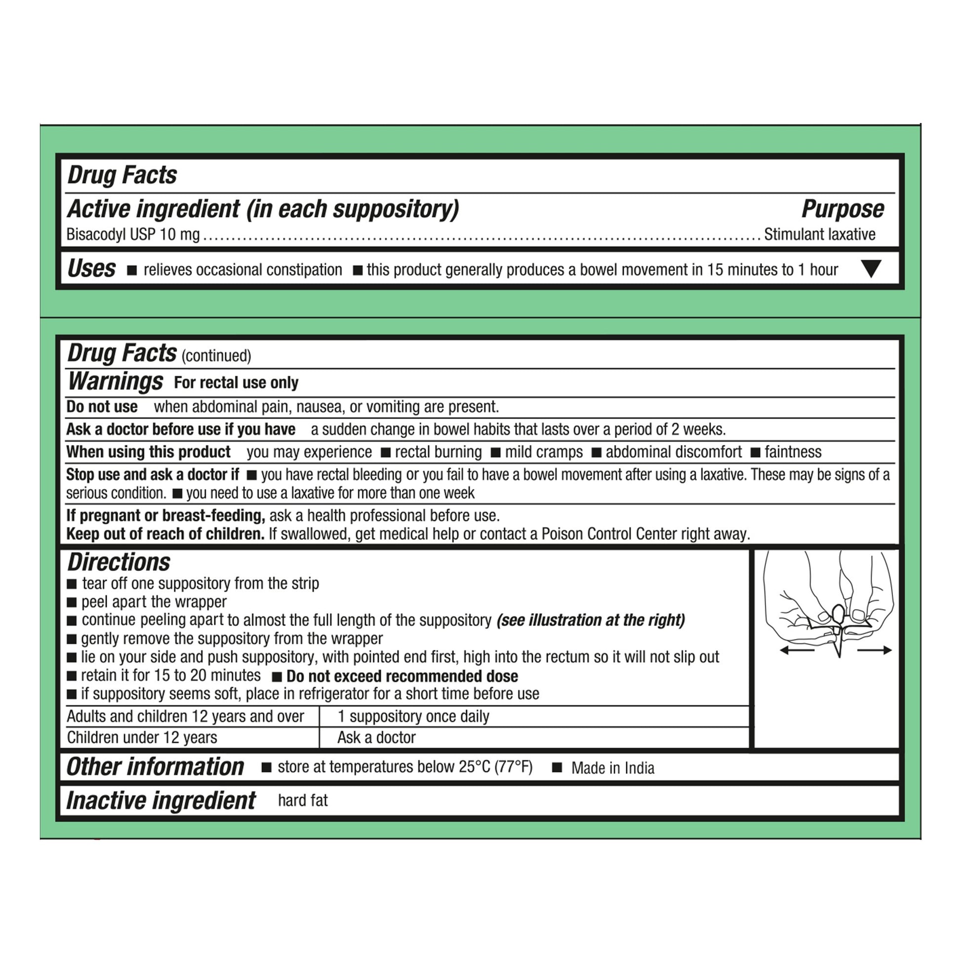 - There are a dozen fast-acting stimulant laxative suppositories in a box.