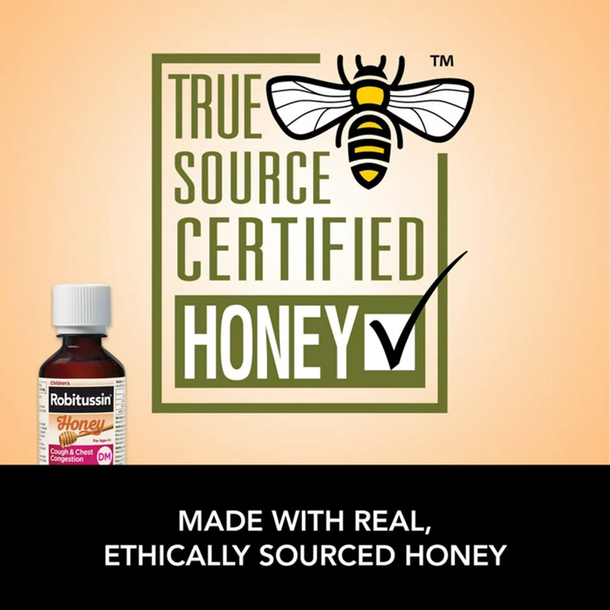 - In addition to honey, each 10-mL dose of Robitussin Children's Honey Cough & Chest Congestion DM Liquid has 10 milligrams of dextromethorphan HBr and 100 milligrams of guaifenesin