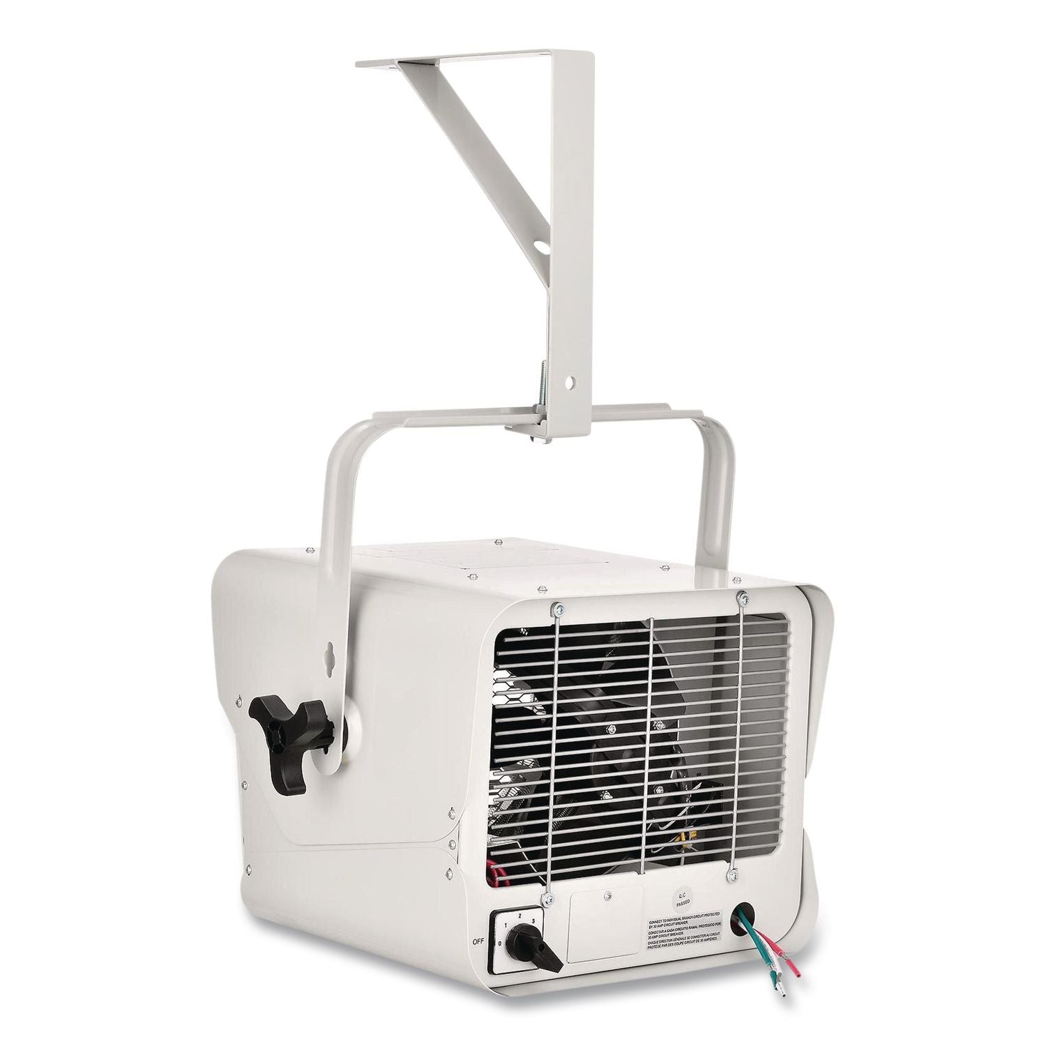 Provide heat where you need it and when you need it most. This multi-watt portable heater directs and pushes out reliable heat to keep productivity and comfort on the rise at your workshop, factory, garage and any other workstation that desires a well heated interior space. This multi-watt heater allows multiple wattage choices from at the turn of a switch. Thermostat control knob allows ergonomic temperature accessibility and adjustability. Balanced fan blades provide maximum air flow while minimizing resonance and turbulence. Includes mounting bracket and tilt adjustment knob for reduced unit footprint and position adjustability. Adjustable louvers allow heating directional control. No need to open the cabinet and sort through tangled wires. Three-wire lead from the cabinet for easy hardwire installation and service. Visual alarm warns of excessive heat and thermal cut-off protects by shutting down the unit. Unit includes a wall bracket and expansion bolts that allows for mounting on a wall. Unit is best suitable for a commercial, industrial or public restroom area.