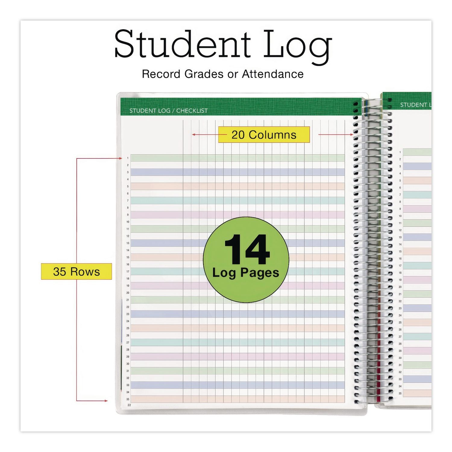 - Separate Sections: Annual-Overview Planning Pages; Daily Scheduling Charts; Parent/Teacher Communications Log; Ruled Notes Pages; Seating Charts; Student Attendance/Grades Logs; Student Lists