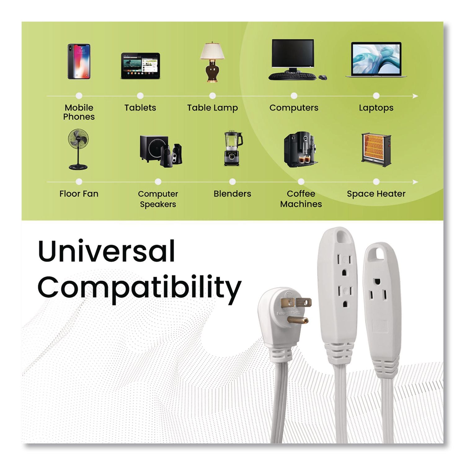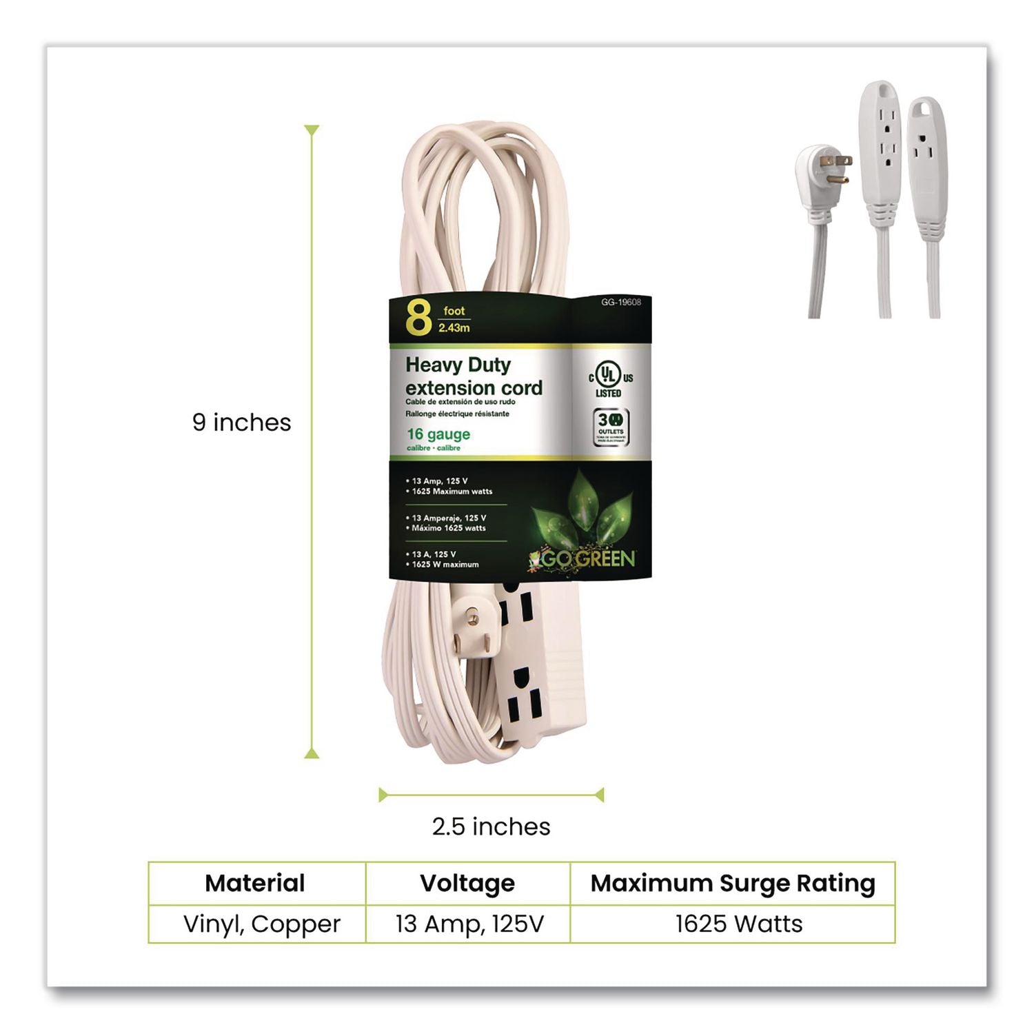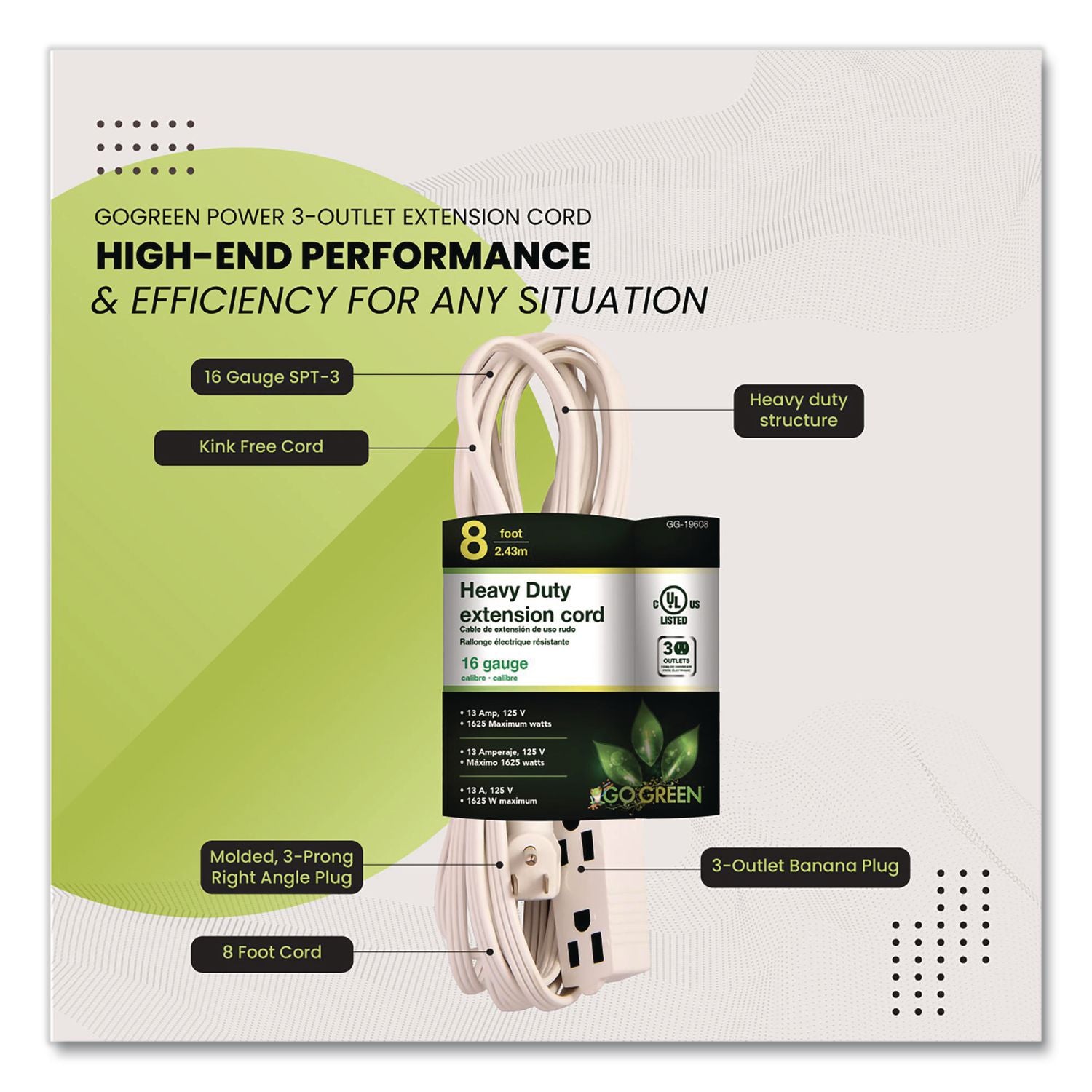 GoGreen Power 3 Outlet Indoor Extension Cord, 8 ft, 13 A, White (GGPGG19608)
