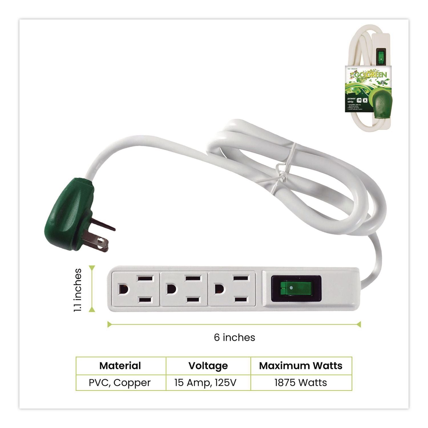GoGreen Power 3 Outlet Power Strip, 2.5 ft Cord, White, 3/Pack (GGPGG13002MS3)