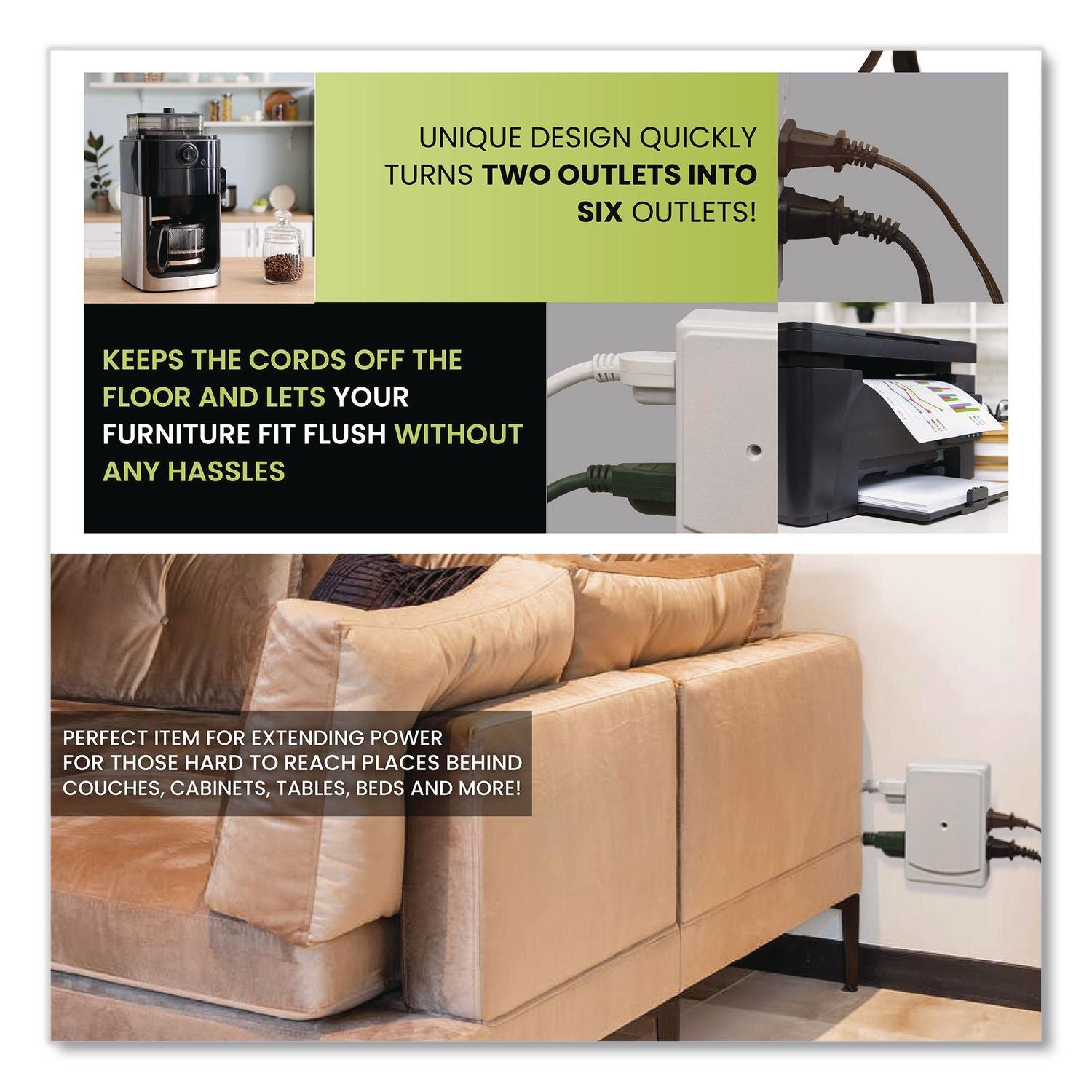 The GoGreen Power 6 Outlet Side Mount Wall Tap is the perfect item for those hard-to-reach places behind couches, tables, beds and more. Its unique design can quickly turn two outlets into six outlets while keeping the cords off the floor and letting your furniture finally sit flush up against the wall. Each outlet can fit a three-pronged, polarized plug securely. Look no further than the six outlet side mount for all your home electrical needs! Our power outlet adapter unit is extremely versatile, and can be plugged into any three-prong duplex outlet. Its heavy-duty structure ensures that the wall tap is there with you for the long haul. cUL listed and meets all industry standards. It has a rating of 1,875 watts, 125 volts and can be used with polarized plugs. We offer free recycling and free shipping back of the used product to our recycling facility. Please view the recycling code and instructions on the back of the package and visit the GoGreen Power website for additional information.