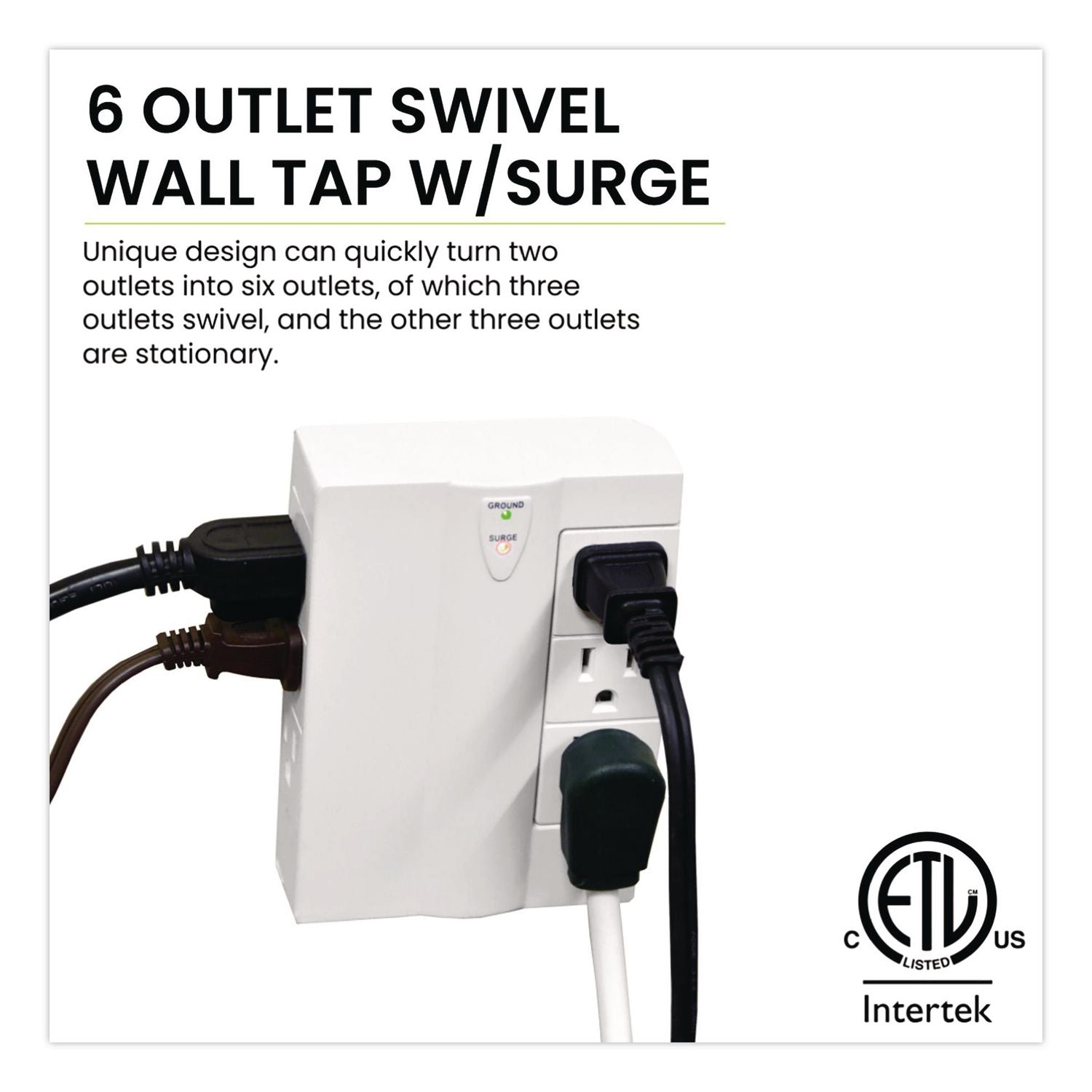GoGreen Power 6 Outlet Swivel Wall Tap with Surge Protection, 1,000 J, White (GGPGG16310TSW)