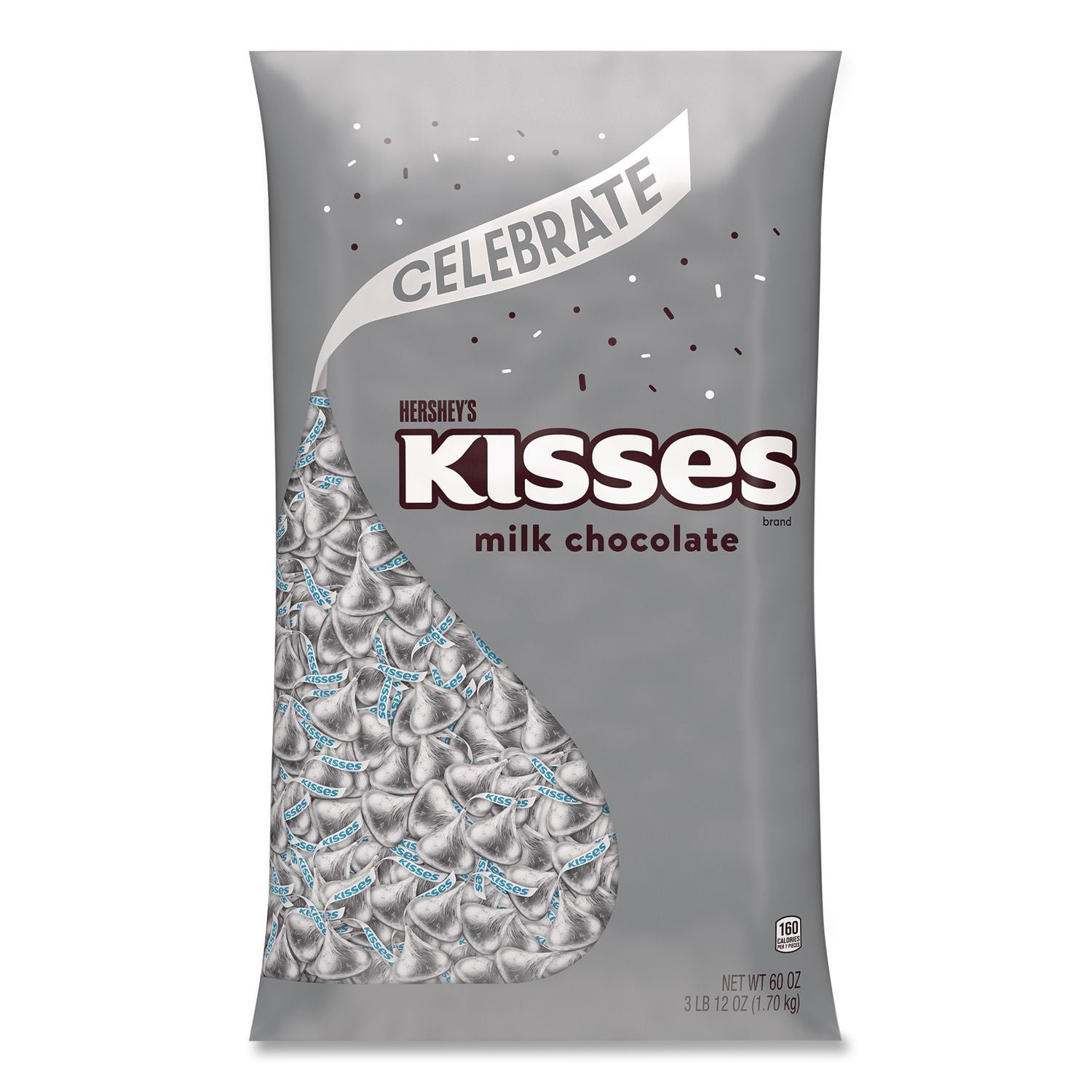 Hershey®'s KISSES Milk Chocolate Candy, Silver Foils, 60 oz Bag (HRSHEC33458)
