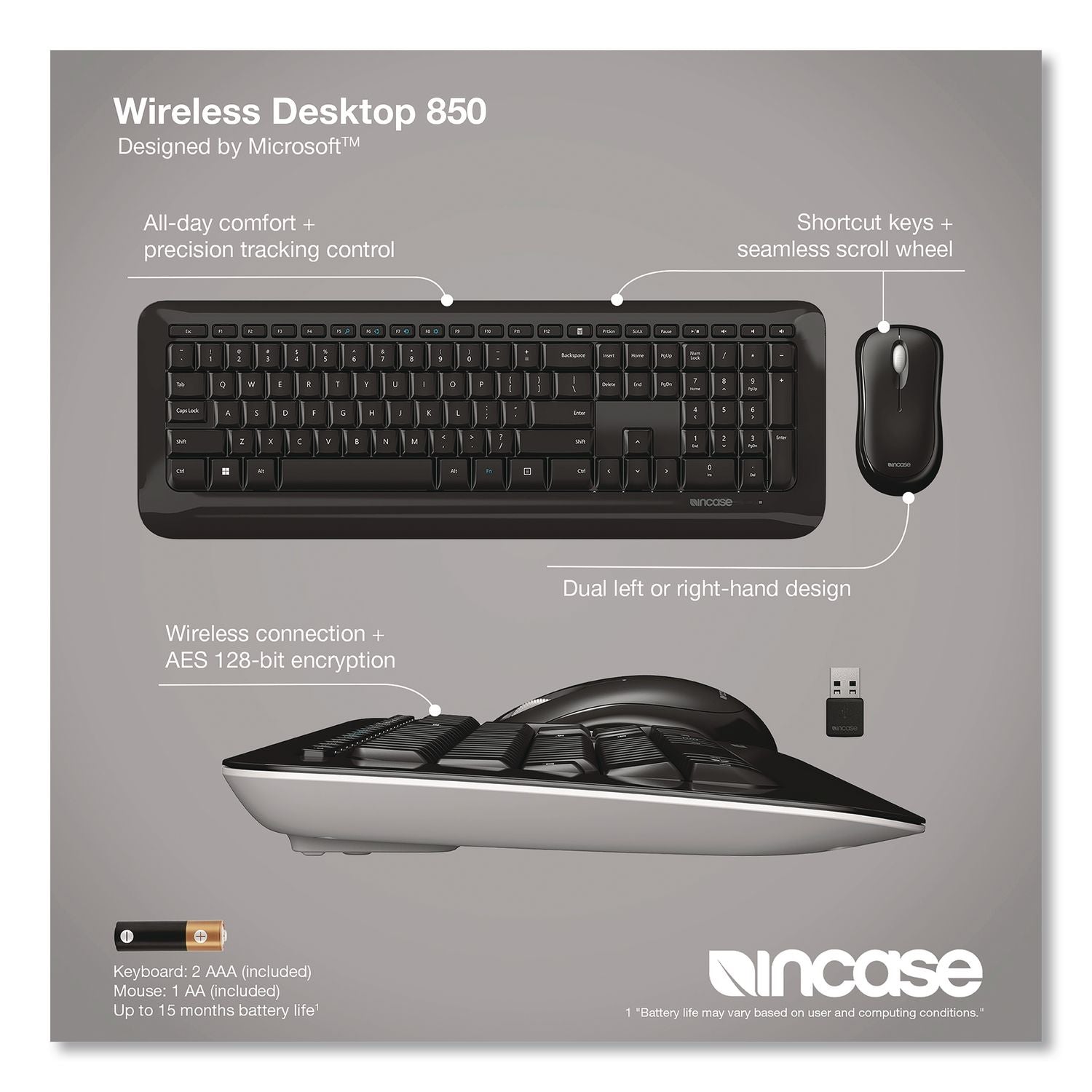 Incase Designed by Microsoft™ Wireless Desktop 850 Keyboard and Optical Mouse Combo, 2.4 GHz Frequency/15 ft Wireless Range, Black (ICAPY900001)