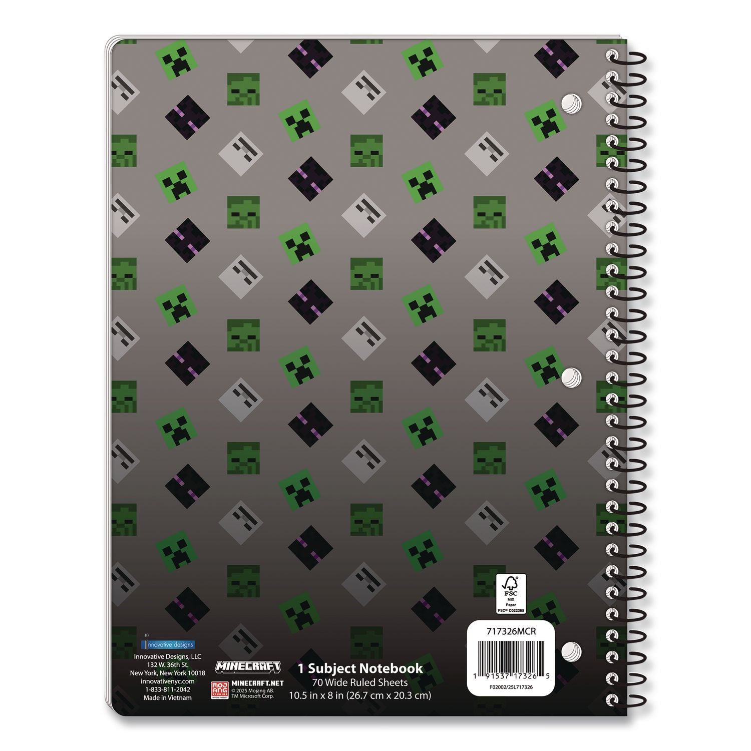 Innovative Designs Licensed Spiral Notebook, Minecraft, 1-Subject, Wide/Legal Rule, Multicolor Cover, (70) 10.5 x 8 Sheets (IDI717326MCRSA)