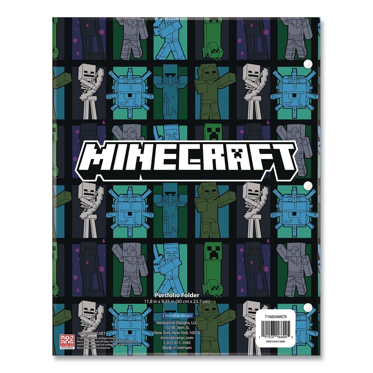 Innovative Designs Licensed Two-Pocket Folder, Minecraft, Side: 3-Hole Punched, Accommodates (50) 11 x 8.5 Sheets, Multicolor (IDI716604MCRSA)