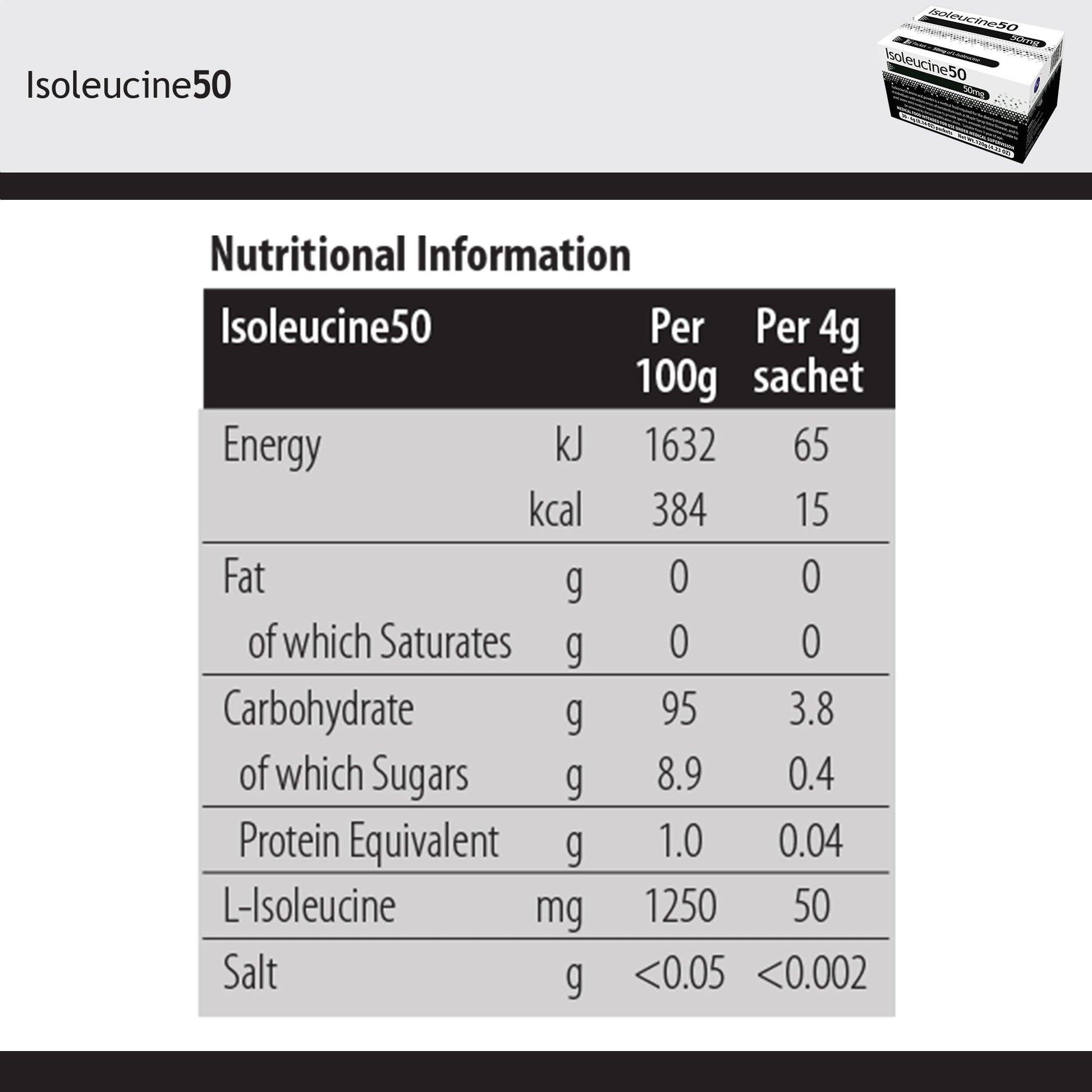 - Each 4 gram packet of Isoleucine50 provides 50mg of L-Isoleucine.